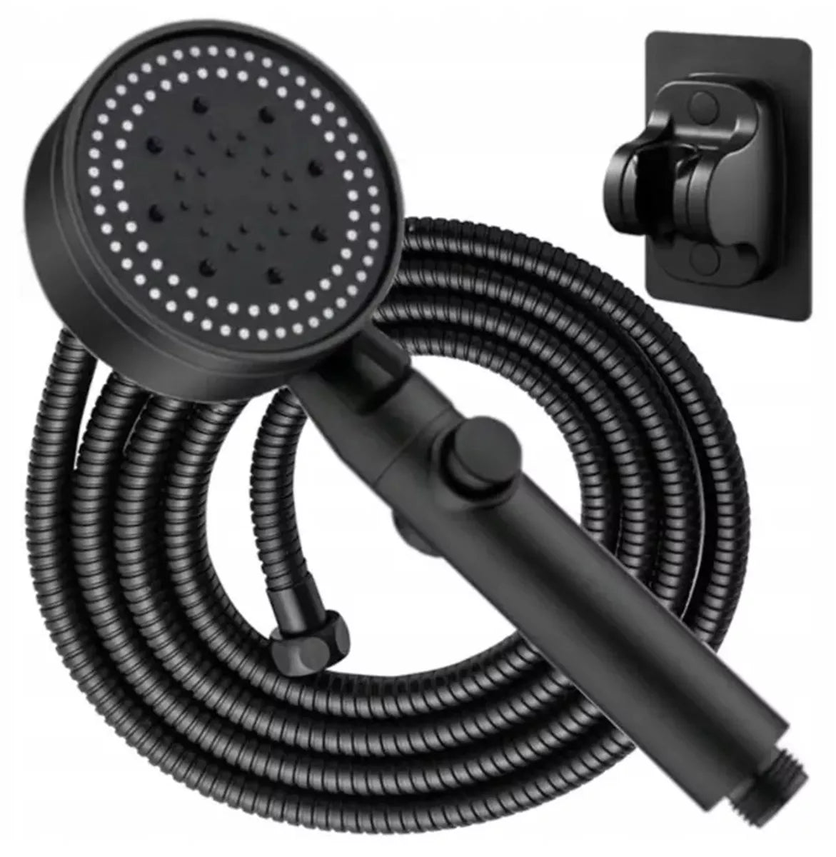 Juoda dušo galvutė. Skirta montuoti į standartinę dušo žarną. Ragelis turi dušo režimo pasirinkimo funkciją (5) ir STOP funkciją, kuri sustabdo srautą. Įmontuotas ventiliatorius padidina dušo galią nepadidindamas vandens sąnaudų. Komplekte yra speciali 200 cm ilgio dušo žarna ir sieninis laikiklis, pritvirtintas lipnia juosta.