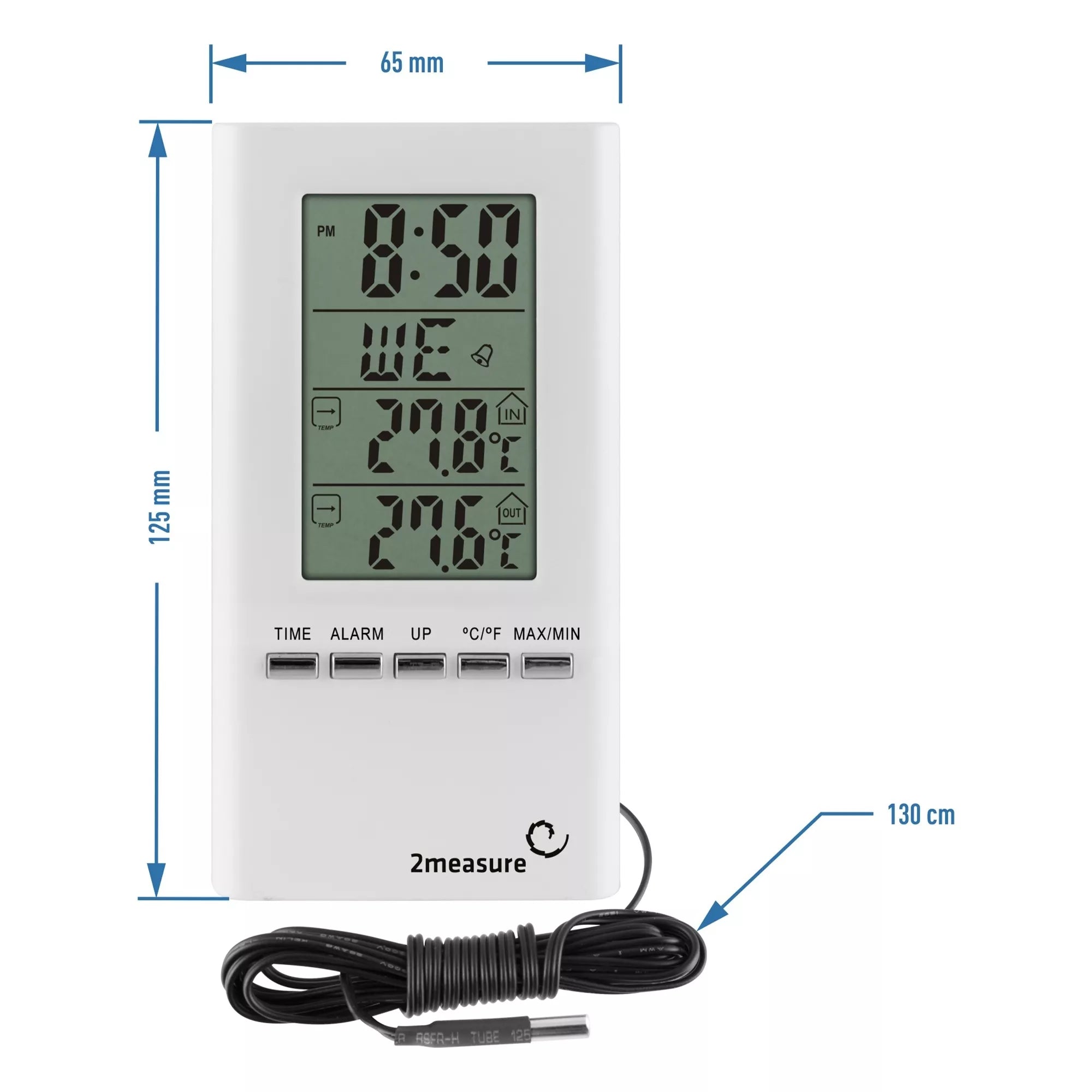- Daugiafunkcinė meteorologinė stotis – savo 1,3 m ilgio zondo dėka galėsite stebėti tiek vidaus (0°C ... +50°C), tiek lauko (-20°C ... +50°C) temperatūrą.