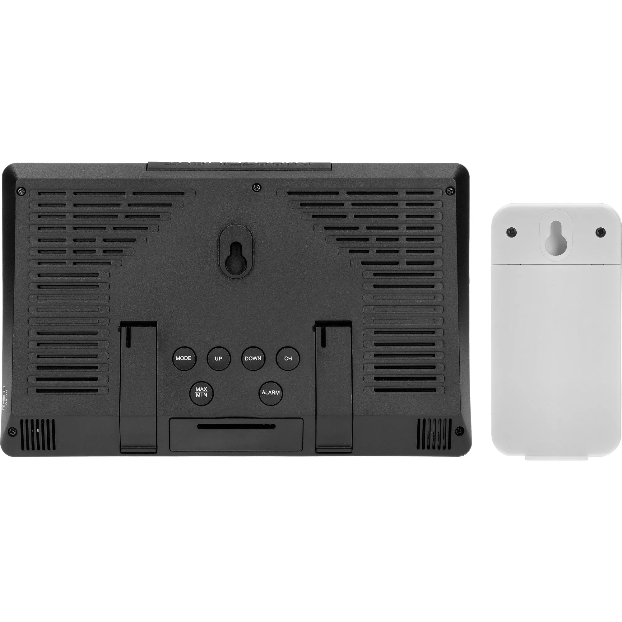Juodas, klasikinis, elegantiškas korpusas puikiai tiks bet kokio interjero erdvėje, taps šiuolaikiška puošmena. Specialios kojelės leidžia stotį pastatyti ant lentynos ar stalo. Taip pat galite pakabinti stotį ir jutiklį ant sienos. Jutiklio ekranas leidžia matyti temperatūros ir drėgmės rodmenis tiesiogiai, kad net būdami lauke turėtumėte viską po ranka. Mažo baterijos įkrovos lygio indikatorius įspės, kai reikės pakeisti elementus.