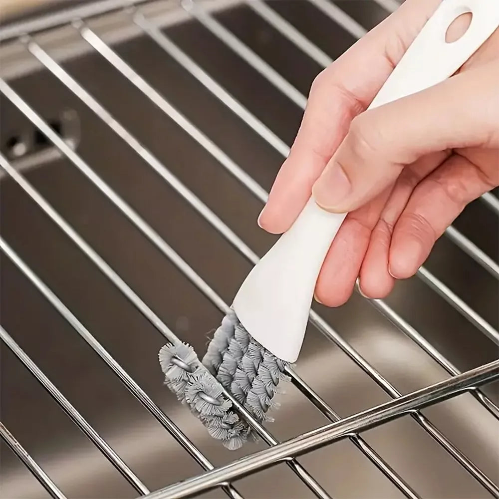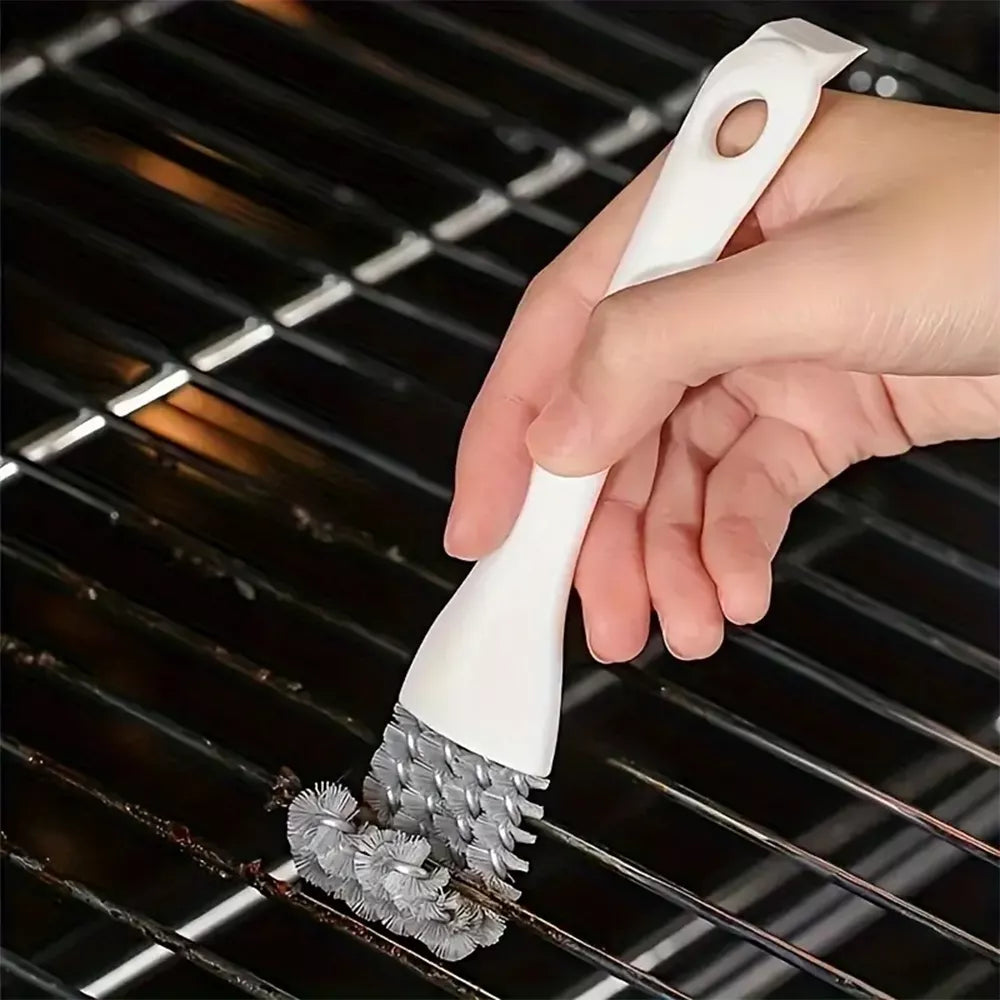 Šepetėlis su lenktu galu. Puikiai tinka valyti sunkiai prieinamas orkaičių, grilių, šaldytuvų groteles. Šepetėlio rankena su aštrių galu pritaikyta nešvarumų grandimui.Puikus aksesuaras kiekvienoje virtuvėje ar lauko grill zonoje.