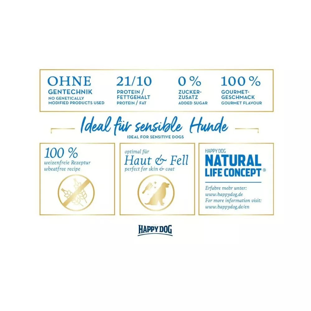 Happy Dog natūralaus gyvenimo koncepcija – sujungti svarbiausius ingredientus ir užtikrinti, kad Jūsų šuns organizmui būtų suteikta viskas, kas yra reikalinga, kad augintinis turėtų pilnavertį gyvenimą: nuo stiprios imuninės sistemos iki sveiko kailio.