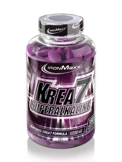 IronMaxx Krea7 Superalkaline - sujungia šešis puikiai suderintus kreatino darinius su unikaliu pH buferiniu agentu ir efektyviausiu kreatino produktu rinkoje. Unikalūs kreatino dariniai buvo kruopščiai parinkti sukuriant išskirtinį ir labai koncentruotą priedą, turintį aukščiausią produkto kokybę. Kreatinas be užkrovų!