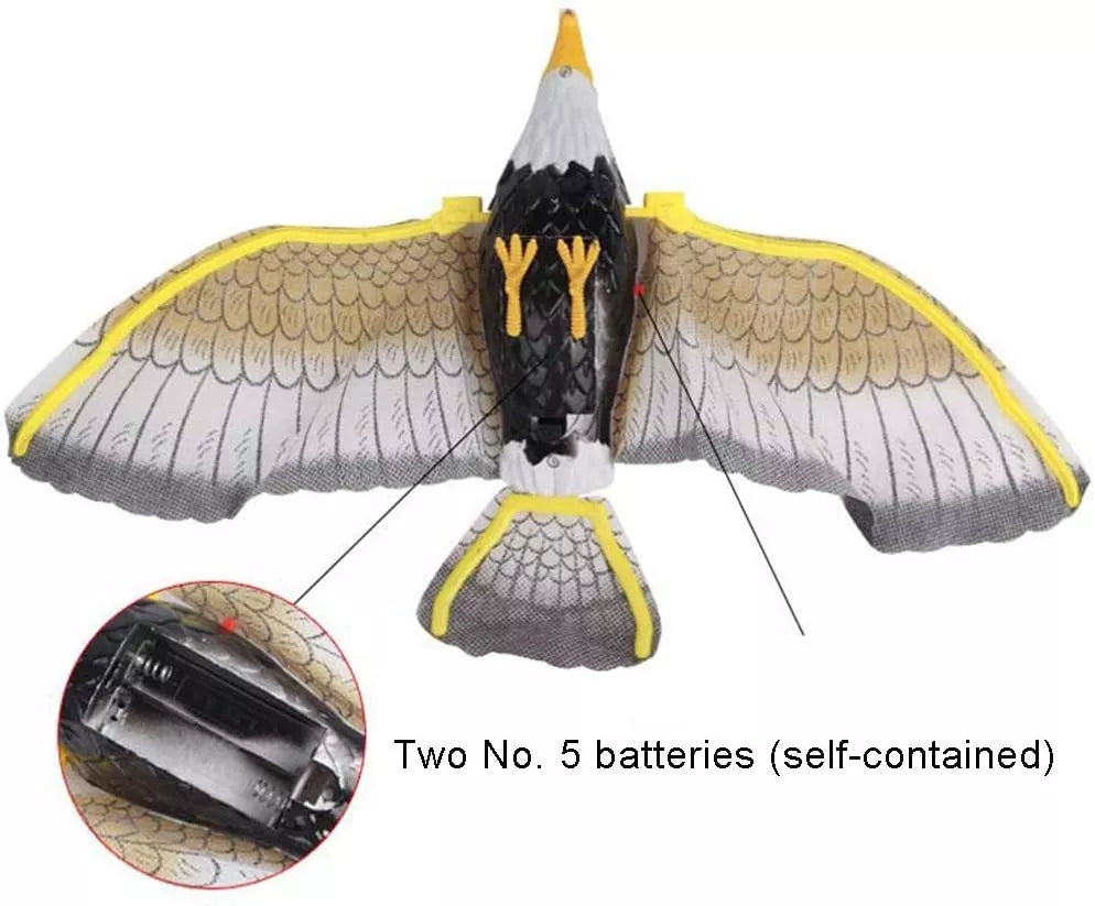 Medžiaga: plastikasMaitinimo šaltinis: 2 x AA baterijos (nepridedamos)Savybės: paukščio imitacija, mirksi, kaboIlgis: 24 cm / plotis: 42 cm (apytiksliai)