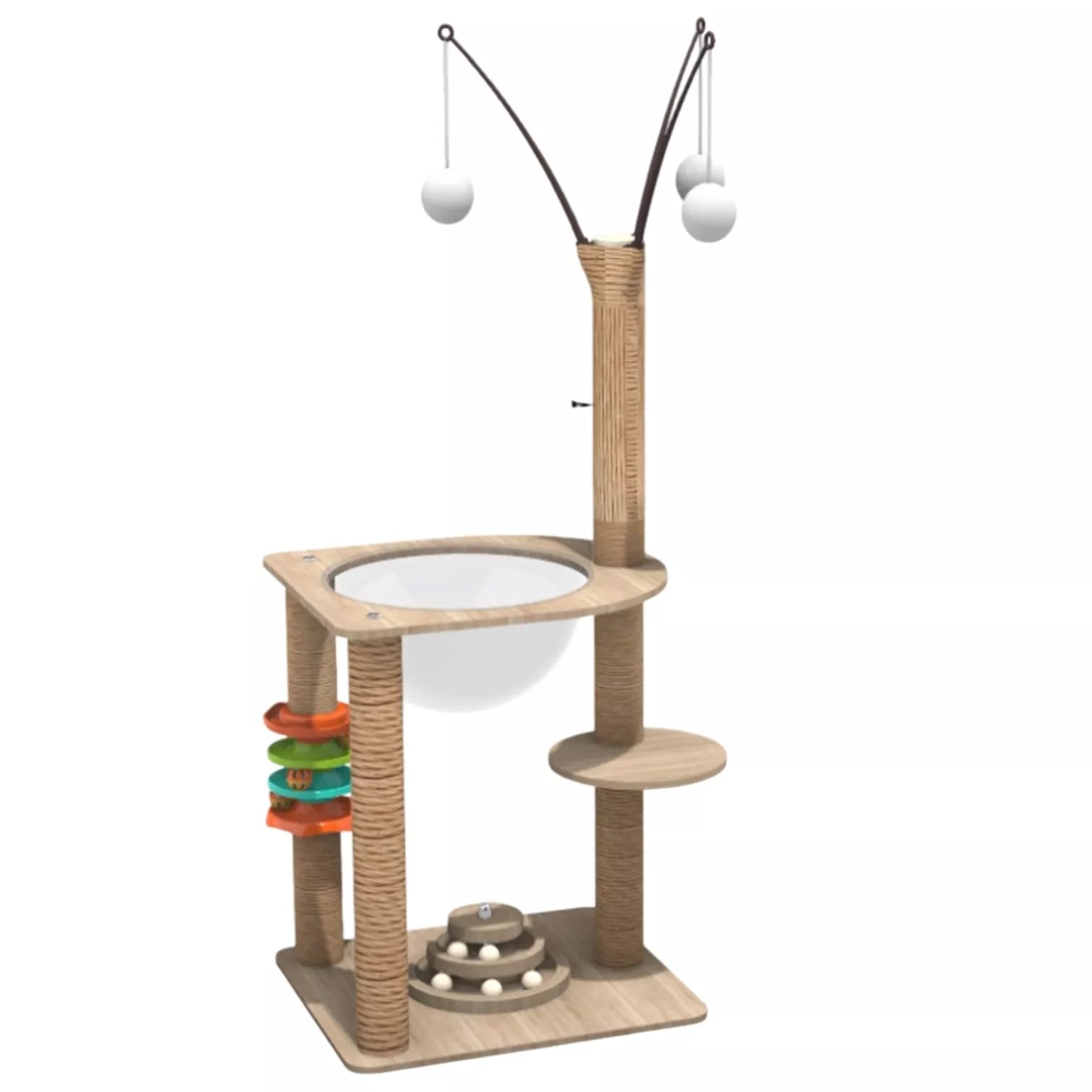 Suteikite savo katei daugiau džiaugsmo, aktyvumo ir komforto! Šis modernus, estetiškai atrodantis ir itin funkcionalus kačių namelis sukurtas taip, kad patenkintų visus jūsų augintinio instinktus – nuo laipiojimo ir žaidimo iki stebėjimo aplinkos ir jaukaus poilsio.