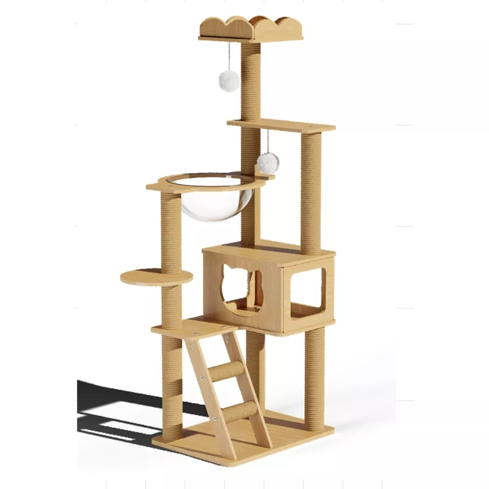 Žaismingi kabantys kamuoliukai skatina instinktą žaisti ir medžioti, o patogios platformos ir kopėtėlės užtikrina lengvą judėjimą tarp skirtingų lygių. Natūralaus medžio spalvos dizainas puikiai dera prie įvairių interjerų ir atrodo tvarkingai bei moderniai.
