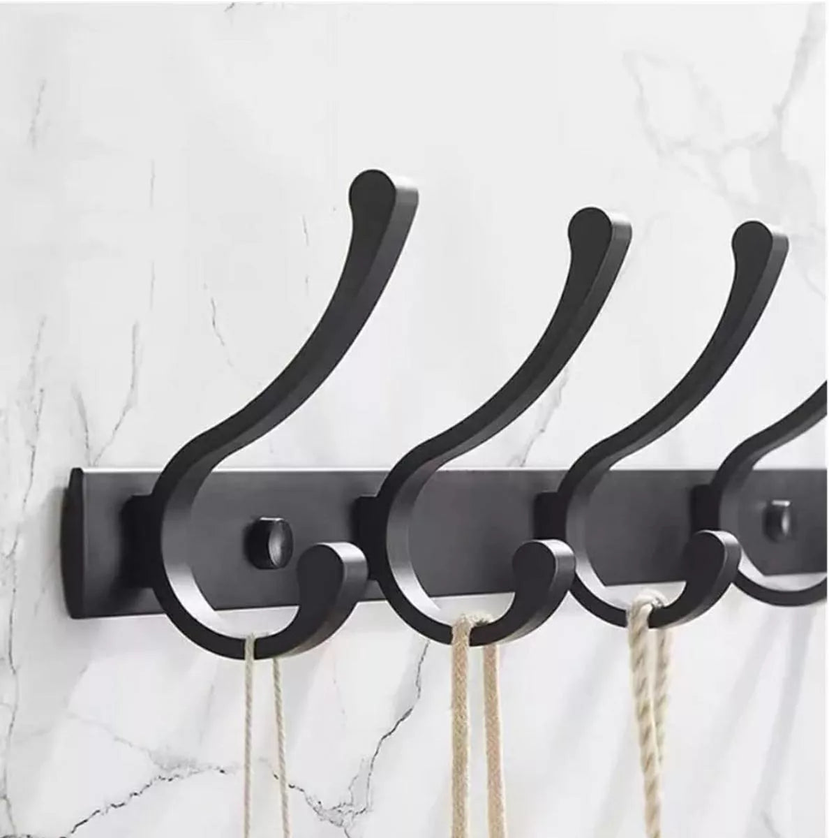 Klasikinė, juoda prieškambario kabykla su 10 kabliukų. Pagaminta iš tvirto, milteliniu būdu dengto nerūdijančio plieno.