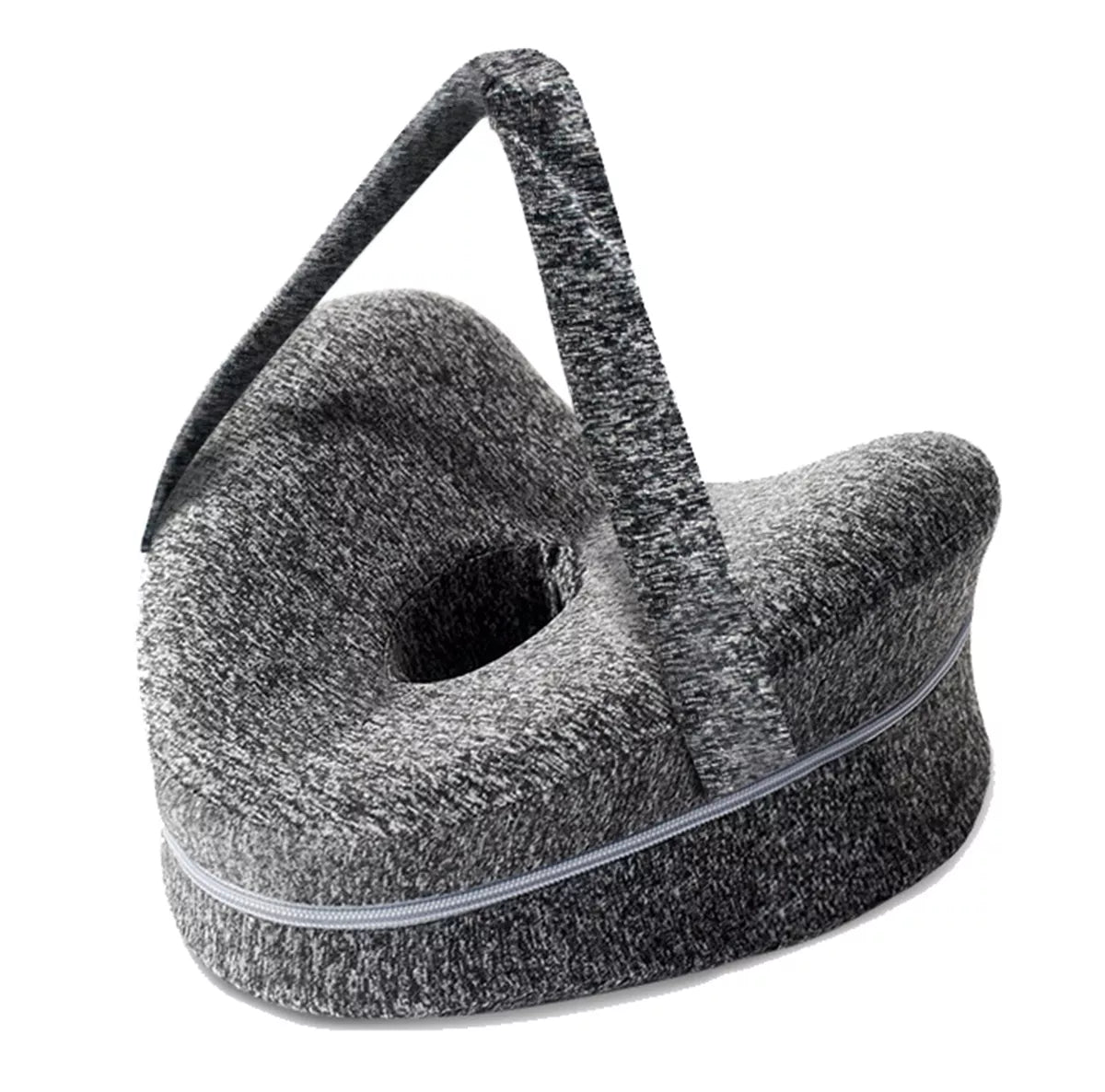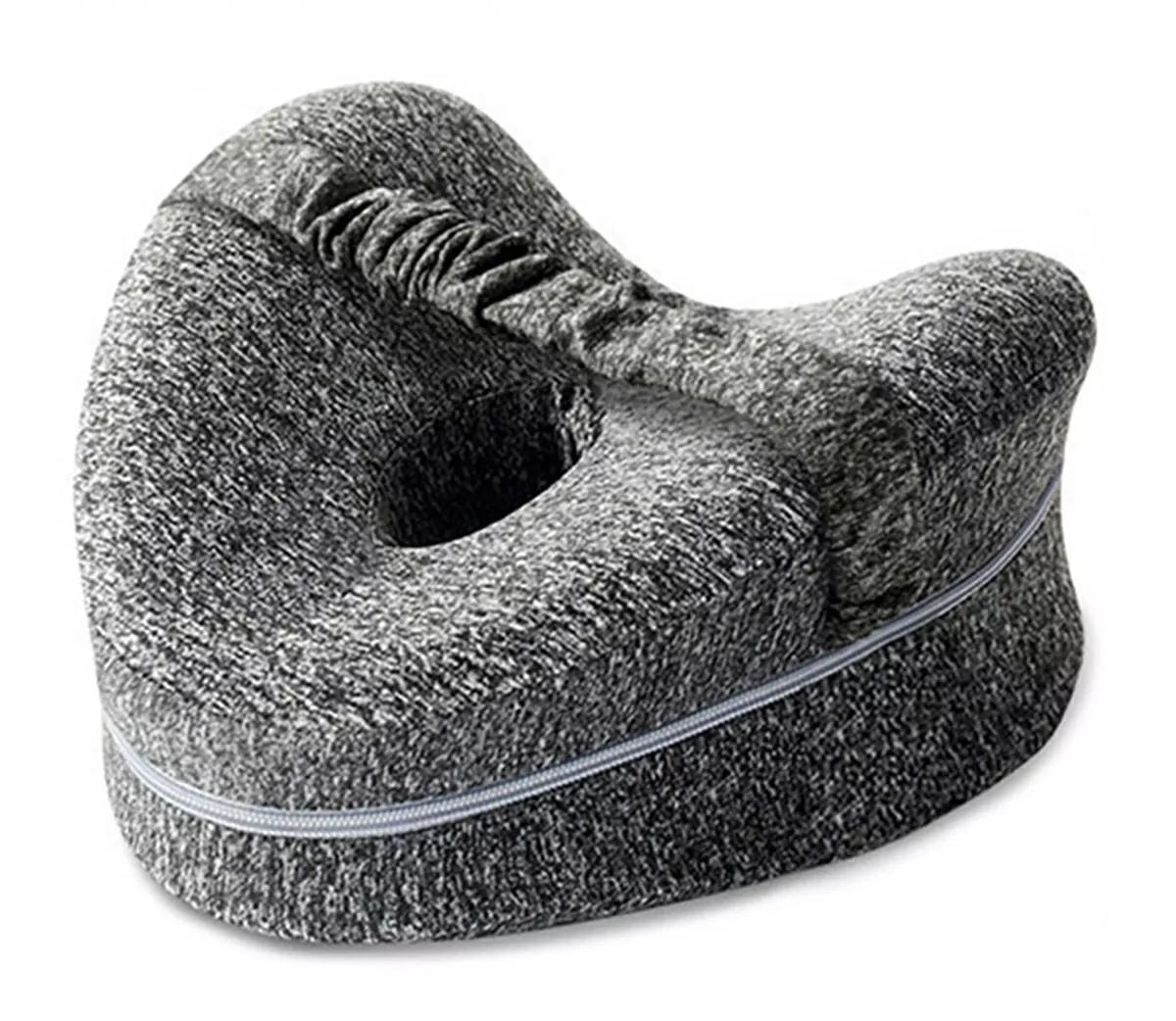 Pagalvė turi formą, leidžiančią patogiai padėti kojas miegant.