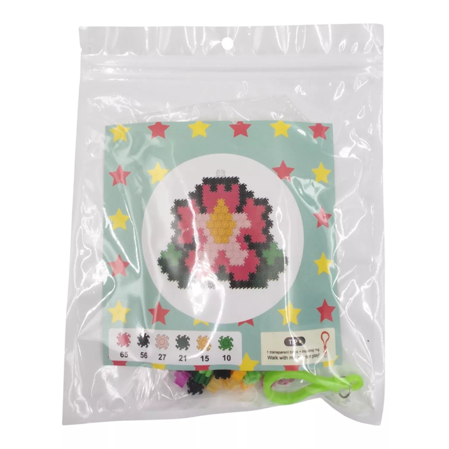 Spalvingas konstruktorius vaikams, skirtas sudėlioti gėlės formos paveikslėlį. Tai kūrybinė veikla, lavinanti fantaziją, loginį mąstymą bei smulkiąją motoriką. Vaikai gali kurti pagal pateiktą pavyzdį arba sugalvoti savo dizainą.