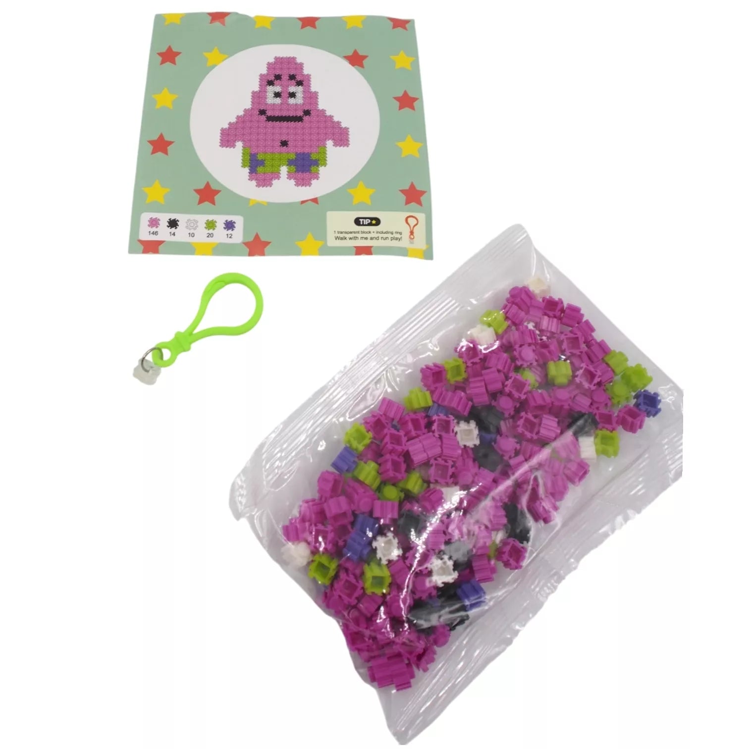 Sukurk smagų personažą – linksmąjį Patriką! Šis konstruktorius lavina vaikų kūrybiškumą, loginį mąstymą ir smulkiąją motoriką. Rinkinyje yra visos reikalingos detalės ir spalvotas trafaretas, pagal kurį lengvai sudėliosite Patriko figūrėlę.