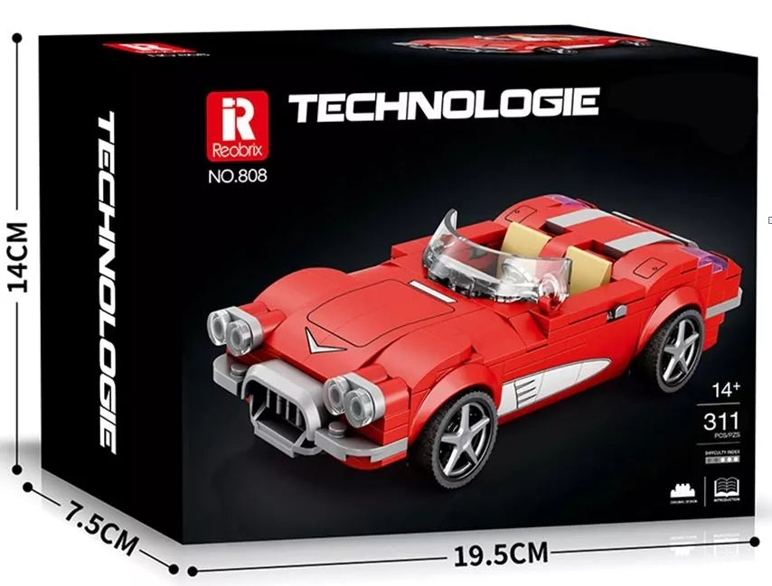 Reobrix Technik Raudonas Sportinis Kabrioletas (NO.808, 311 detalių)