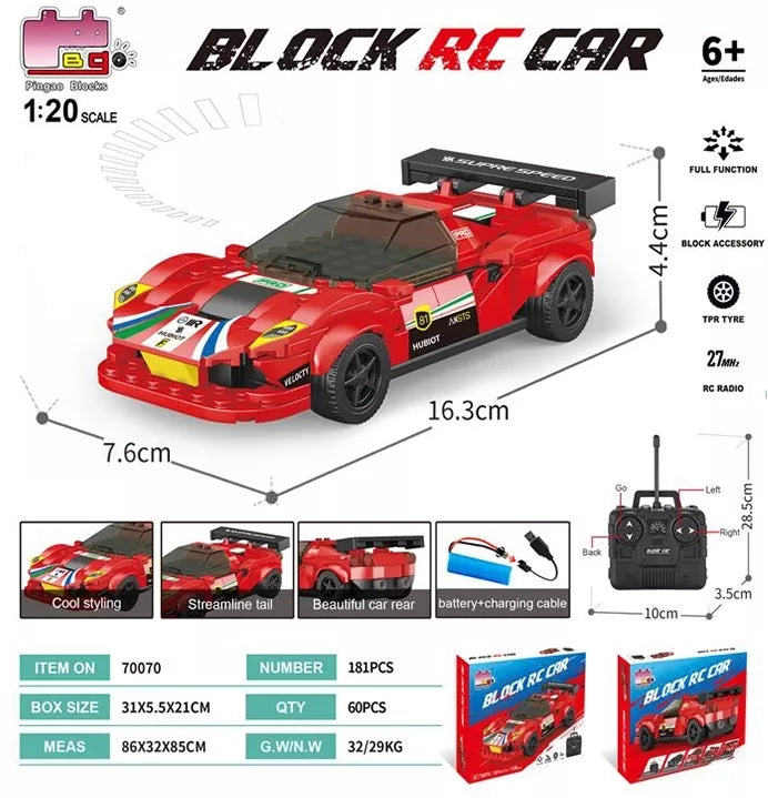 Automobilis turi sportišką dizainą su galiniu spoileriu, detaliu priekiu bei plačia galine dalimi. Surinktas modelis valdomas nuotolinio valdymo pulteliu (27 MHz), leidžiančiu važiuoti pirmyn, atgal bei sukti į kairę ir dešinę. Komplekte yra akumuliatorius su įkrovimo laidu, todėl žaidimas patogus ir ilgaamžis.