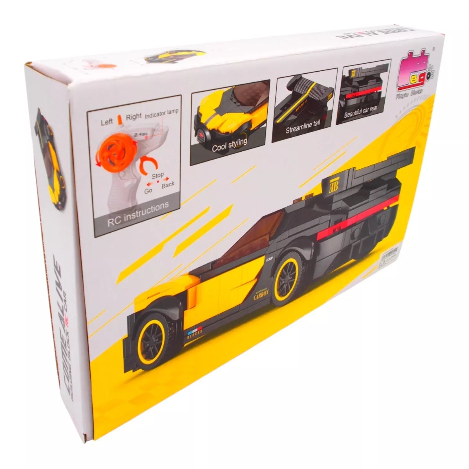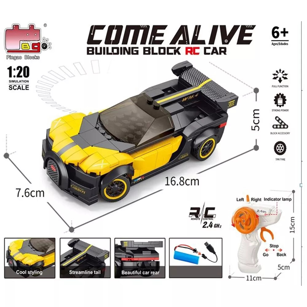 Atraskite greitį, kūrybą ir pramogą viename! Šis ryškiai geltonos ir juodos spalvos sportinio automobilio konstruktorius leis pastatyti įspūdingą modelį iš 251 detalės, o vėliau mėgautis nuotoliniu valdymu.