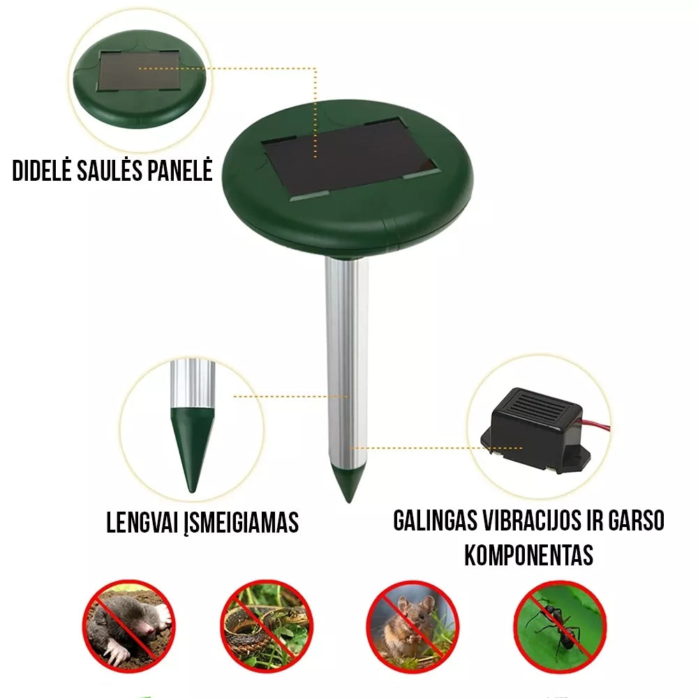 Saulės energija maitinami kurmių ir graužikų baidyklės – 2 vnt. komplektas