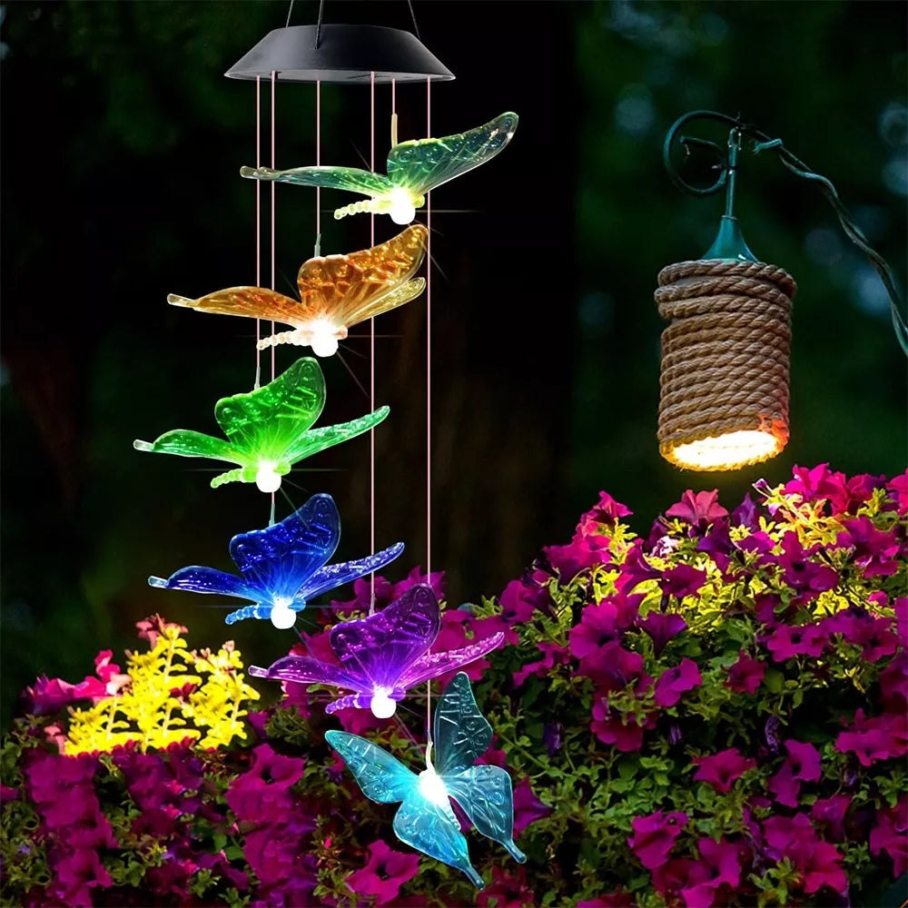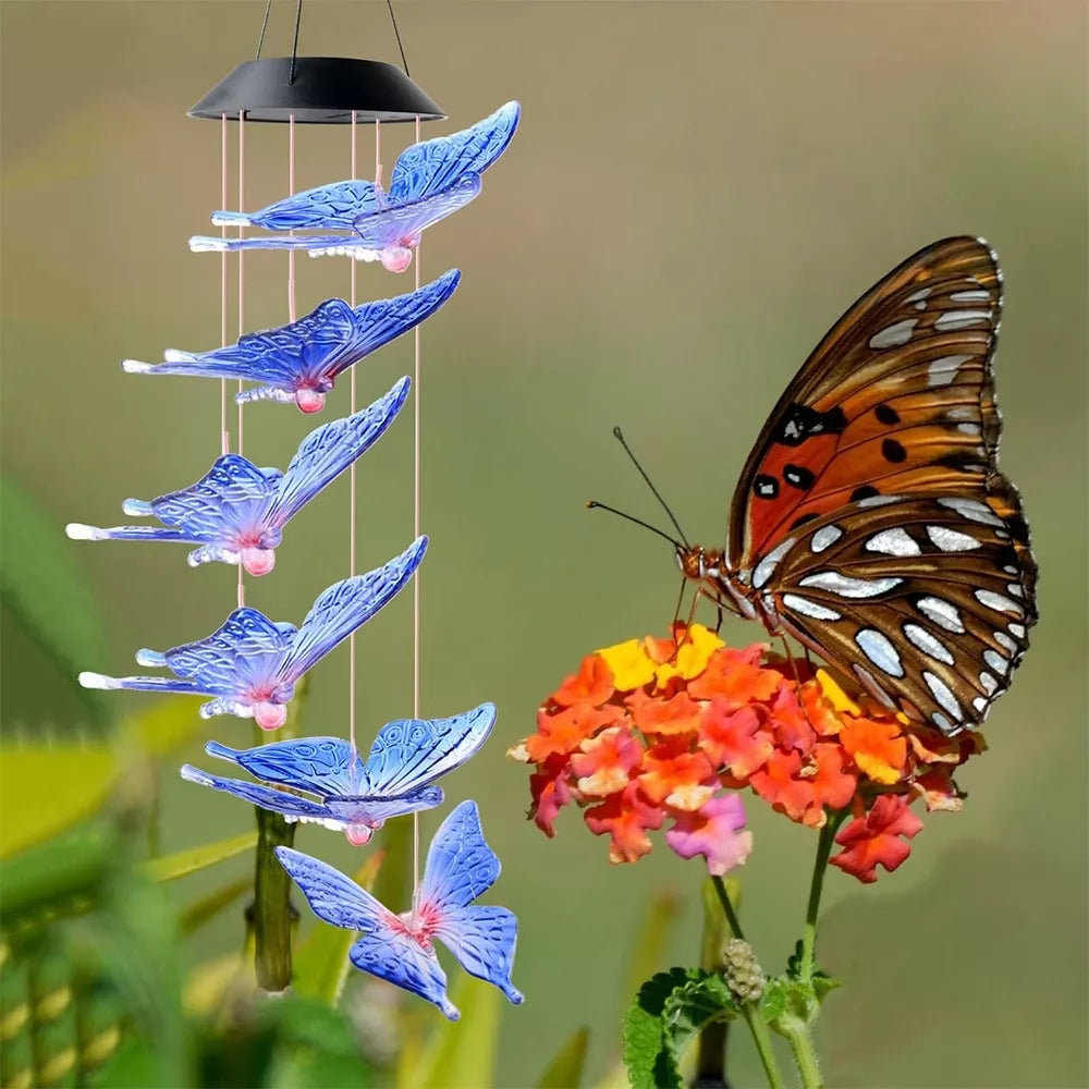 Saulės energija įkraunamas spalvotas šviestuvas „Drugeliai“ – dekoratyvinė lauko girlianda