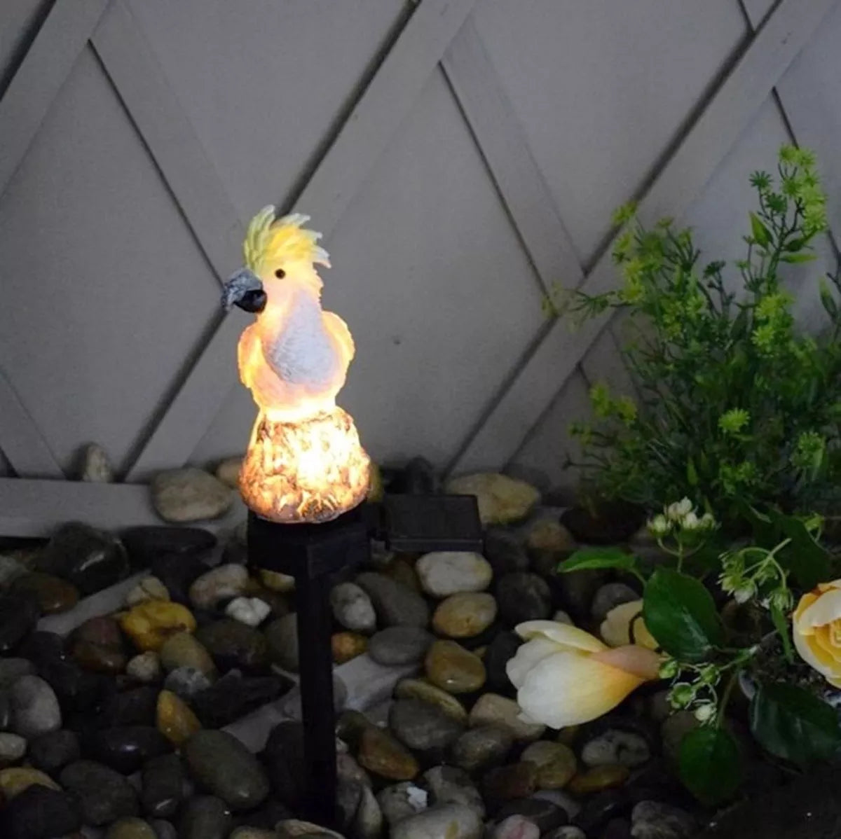 Neįprasta LED saulės sodo lempa – kakadu papūgos formos