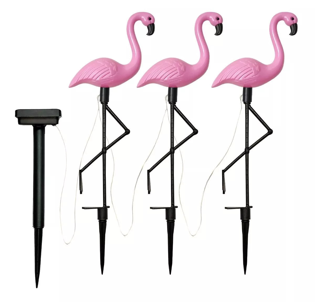 Rinkinys iš 3 neįprastų LED saulės sodo lempų – flamingų formos