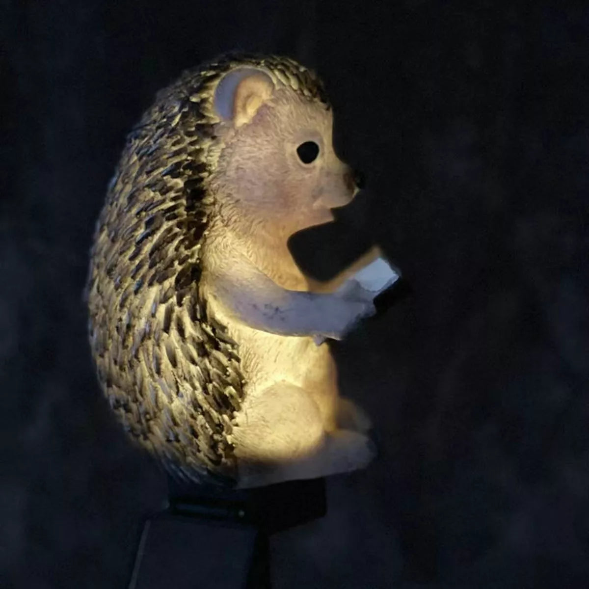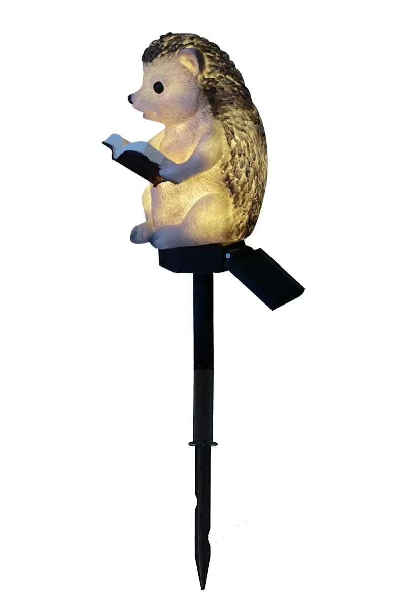 Neįprastas LED dekoratyvinis sodo šviestuvas ežio formos. Puikus dekoratyvinis elementas. Lempa maitinama saulės energija, kuri naudoja saulės bateriją, kad įkrautų įmontuotą įkraunamą bateriją. Prietaisas automatiškai įsijungia sutemus (įrengtas prieblandos jutiklis), o pilno akumuliatoriaus įkrovimo užtenka iki 8 valandų nepertraukiamo veikimo. Lempa turi baltą šviesą skleidžiantį LED. Tvirtas antgalis leidžia patikimai ir greitai sumontuoti lempą į žemę, o vandeniui atsparus korpusas garantuoja sklandų naudojimą nepaisant oro sąlygų.
