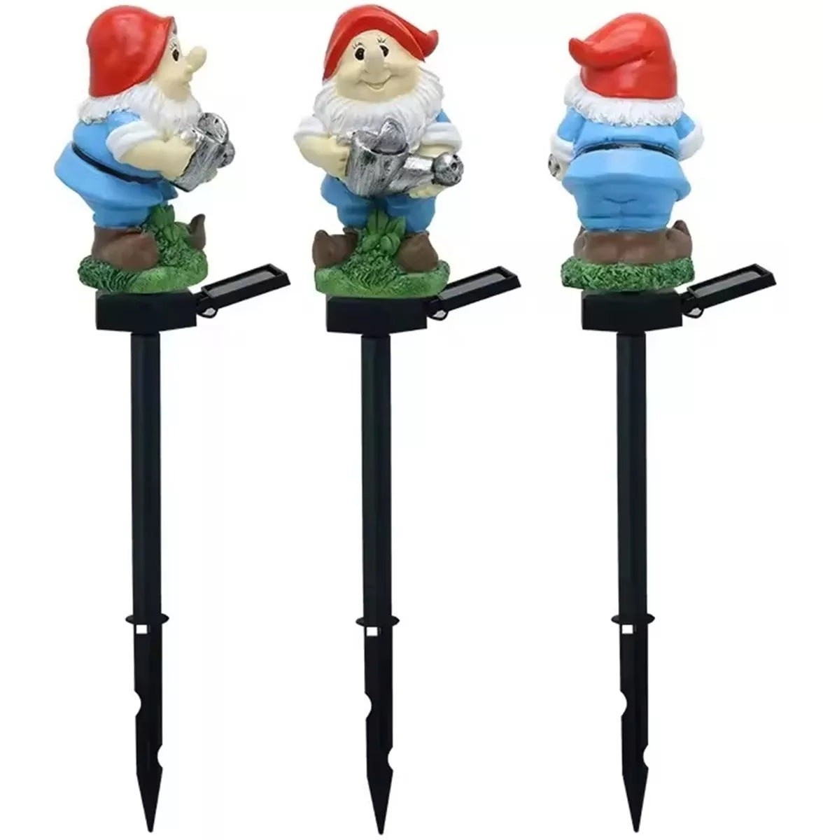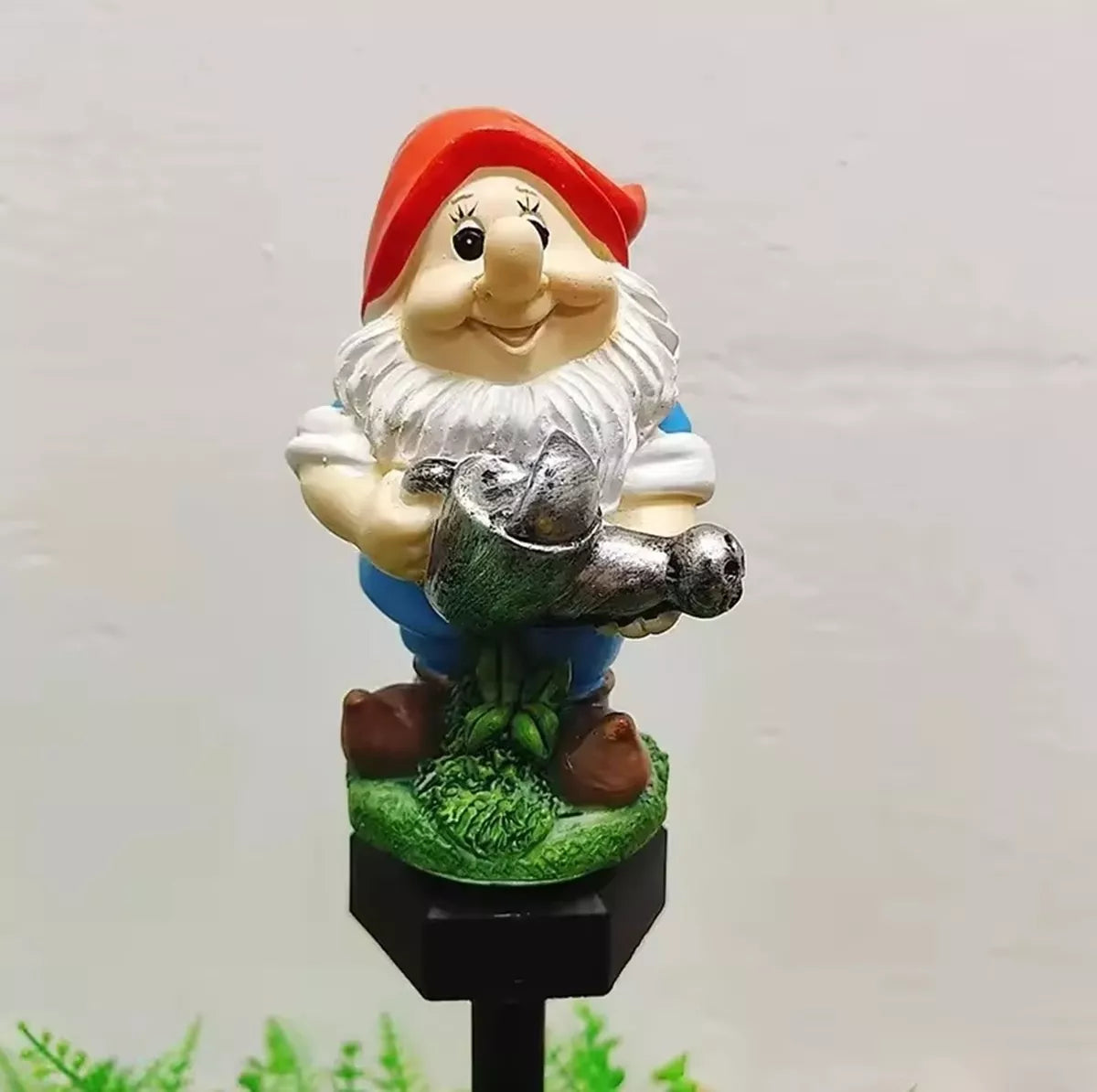 LED sodo šviestuvas nykštuko formos su laistytuvu. Tobulas dekoratyvinis elementas. Lempa maitinama saulės energija, kuri naudoja saulės bateriją, kad įkrautų įmontuotą bateriją. Prietaisas automatiškai įsijungia sutemus (yra įrengtas prieblandos jutiklis), o pilno akumuliatoriaus įkrovimo užtenka iki 8 valandų nepertraukiamo veikimo. Lempa turi šiltai baltą šviesą. Tvirtas antgalis leidžia saugiai ir greitai sumontuoti lempą į žemę, o vandeniui atsparus korpusas garantuoja sklandų naudojimą nepaisant oro sąlygų.
