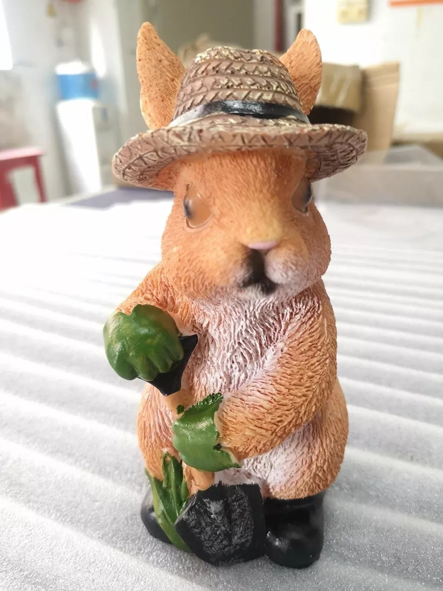 Neįprastas LED sodo šviestuvas triušio formos su kepure. Puikus dekoratyvinis elementas. Lempa maitinama saulės energija, kuri naudoja saulės bateriją, kad įkrautų įmontuotą įkraunamą bateriją. Prietaisas automatiškai įsijungia sutemus (įrengtas prieblandos jutiklis), o pilno akumuliatoriaus įkrovimo užtenka iki 8 valandų nepertraukiamo veikimo. Lempa turi baltą šviesą skleidžiantį LED. Tvirtas antgalis leidžia patikimai ir greitai sumontuoti lempą į žemę, o vandeniui atsparus korpusas garantuoja sklandų naudojimą nepaisant oro sąlygų.