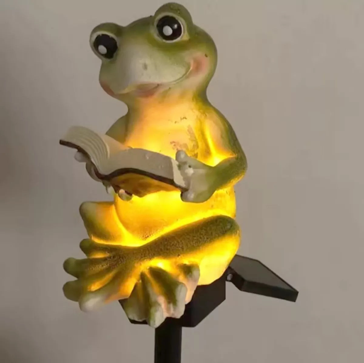 LED sodo šviestuvas - varlės skaitančios knygą formos. Tobulas dekoratyvinis elementas. Lempa maitinama saulės energija, kuri naudoja saulės bateriją, kad įkrautų...