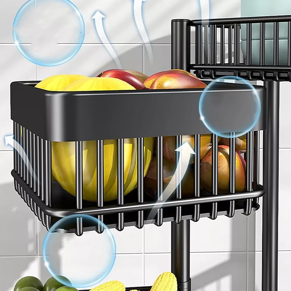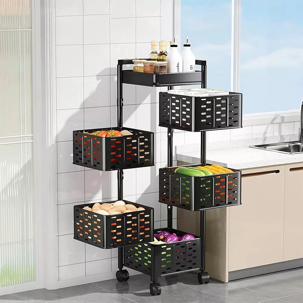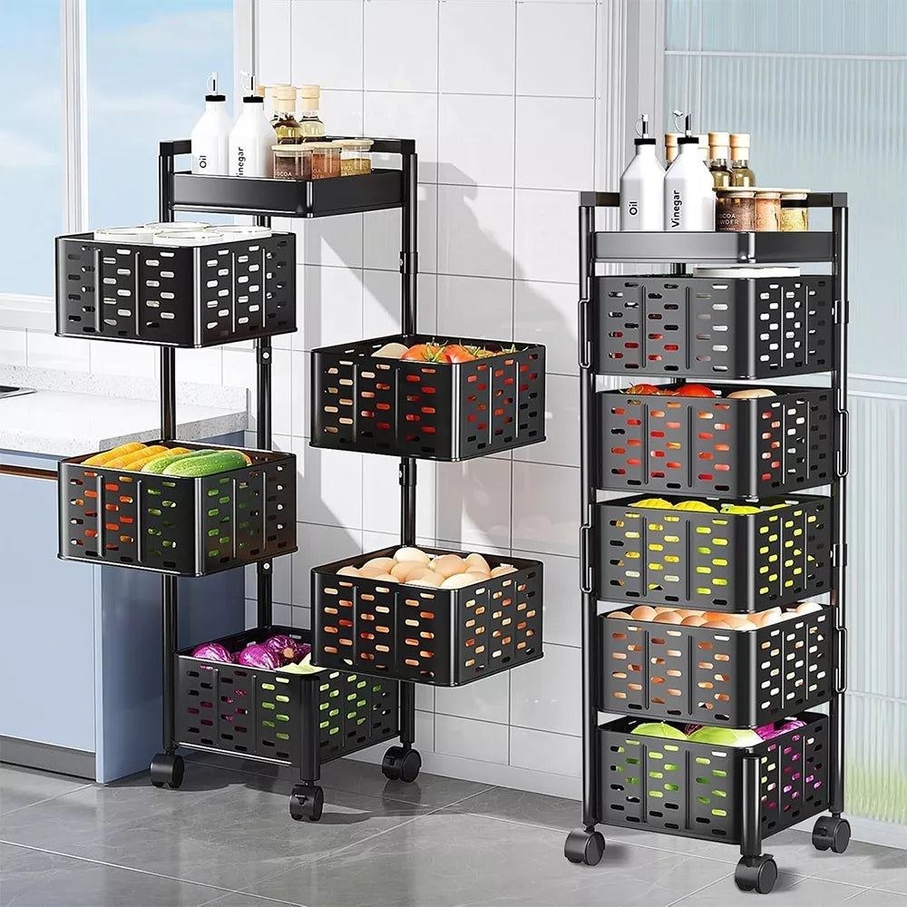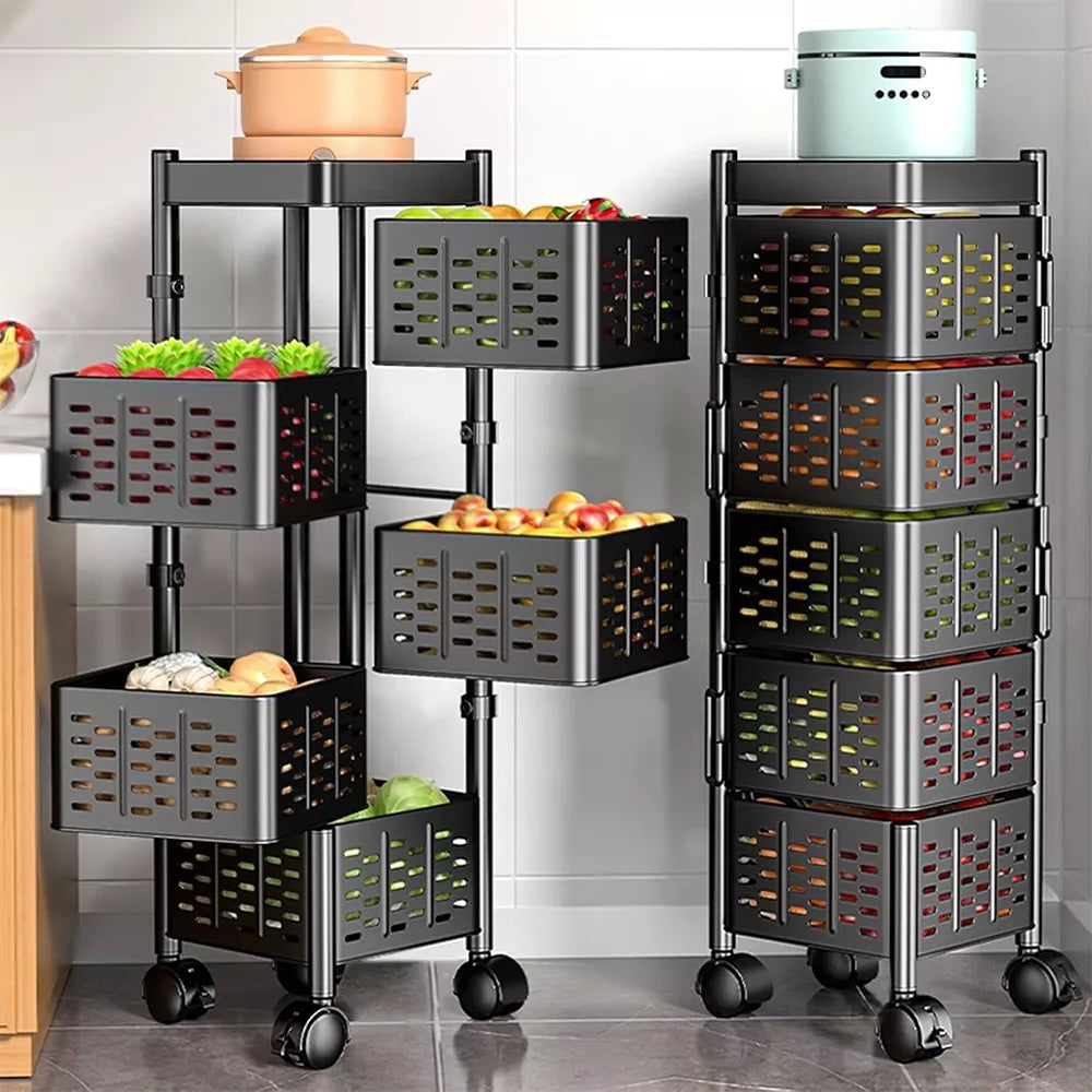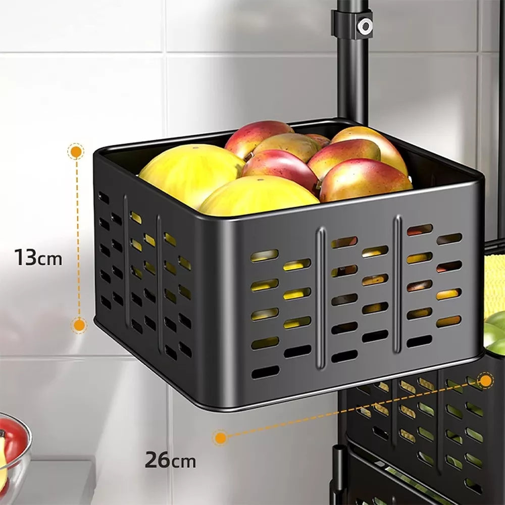 Ieškote praktiško, modernaus ir kompaktiško sprendimo savo virtuvei, voniai ar net kosmetikos priemonėms laikyti? Šis daugiafunkcis stelažas su 5 erdviais, pasukamais krepšeliais – tai universalus sprendimas, leidžiantis tvarkingai laikyti vaisius, daržoves, prieskonius, kosmetiką, valymo priemones ar net skalbimo reikmenis!
