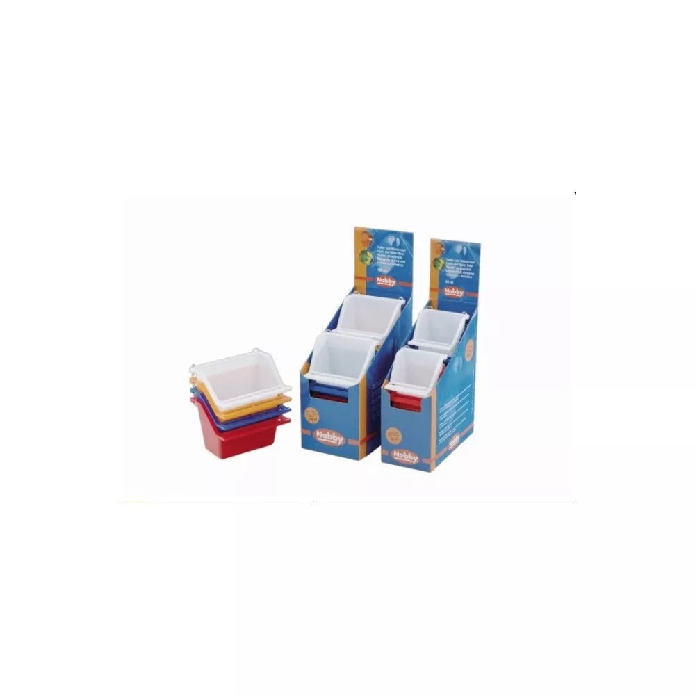 Pakabinama, plastikinė lesyklėlė paukščiams su laktele. Talpa: 130 ml. Gali būti naudojama vandeniui arba lesalui. Pakelta galinė sienelė apsaugo nuo...
