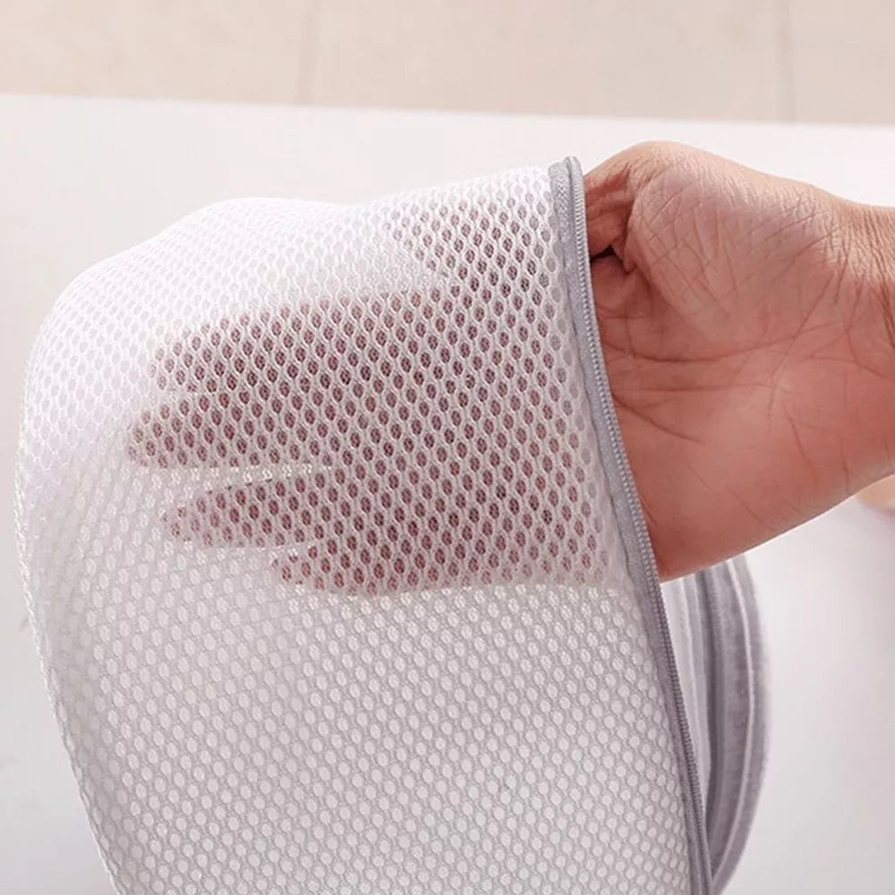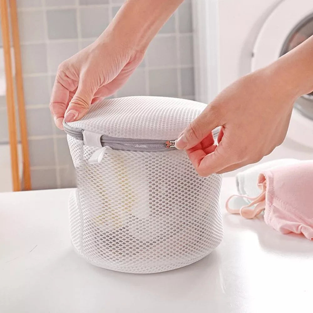 Skalbinat į jį galima dėti liemenėles, kelnaites, kojines ar kitus smulkius daiktus.Apsaugo nuo apsivėlimo.Ko gero, visos susidūrė su problema, kai išskalbus skalbimo mašina, apatinis trikotažas, ypač liemenėlės, praranda formą, išsiklaipo, o pasitaiko kad vieliniai lankeliai išlenda pro medžiagą ir net praduria skalbimo mašinos gumas.Kad taip neatsitiktų, rekomenduojame liemenėlių skalbimo maišelį, kuriame puikiai išskalbsite jautrias išsitampymui liemenėles, ar netgi liemenėles su lankeliais ir būsite rami, kad joms nieko neatsitiks.Plotis: aukštis 18 cm, plotis 16 cm.