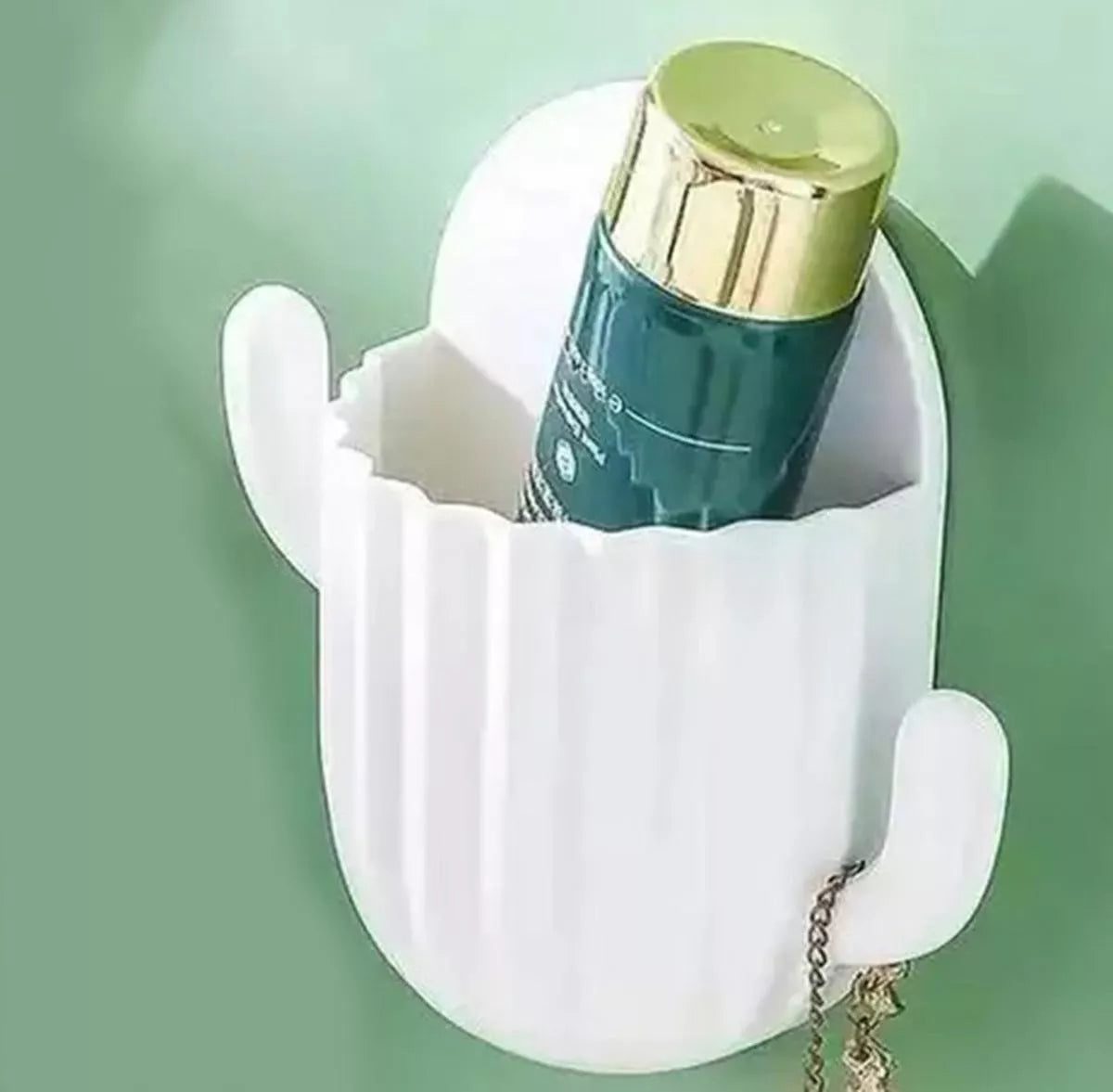 Lipnus laikiklis smulkiems daiktams. Puikus sprendimas laikyti mažą kosmetiką, šepetėlius ar pvz., dantų šepetėlius. Patogus, atviras dizainas ir du papildomi kabliukai rankenos šone. Neinvazinis montavimas ant sienos naudojant lipduką (yra komplekte) arba naudojant viršutinėje dalyje esančią skylę.