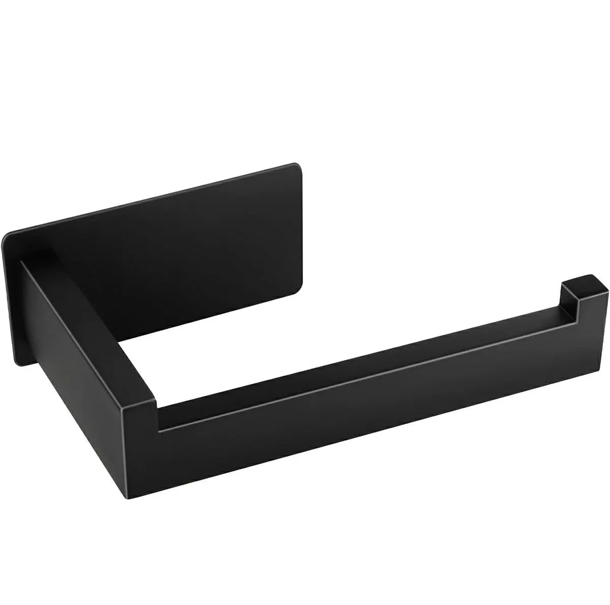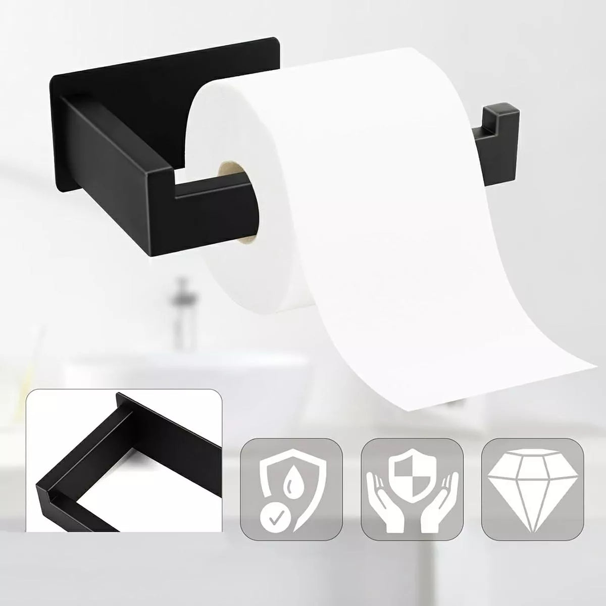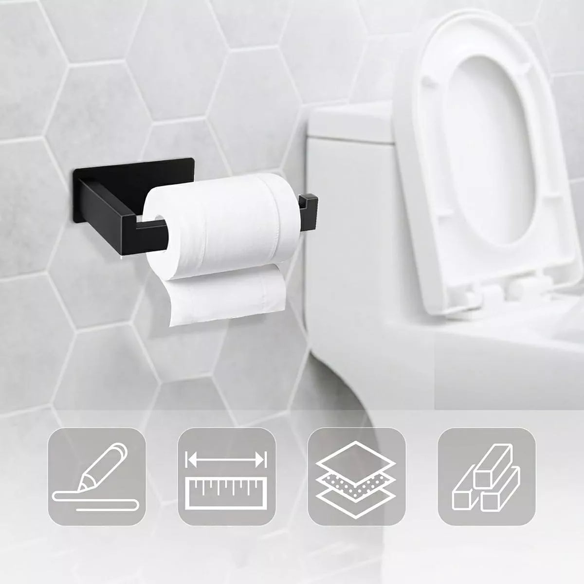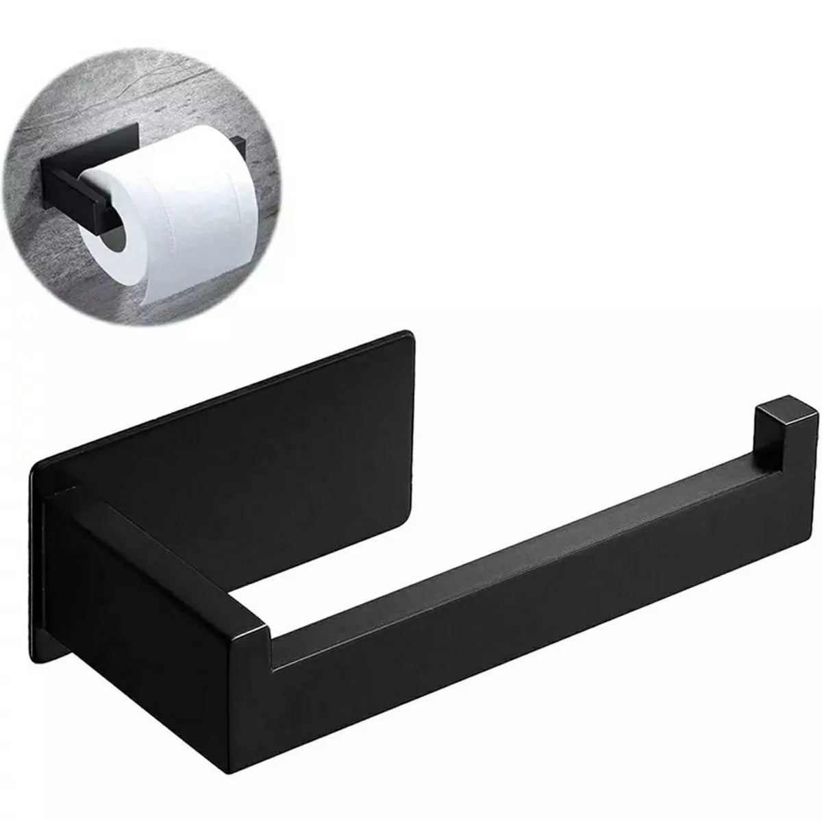 Juodos spalvos lipnus tualetinio popieriaus laikiklis.