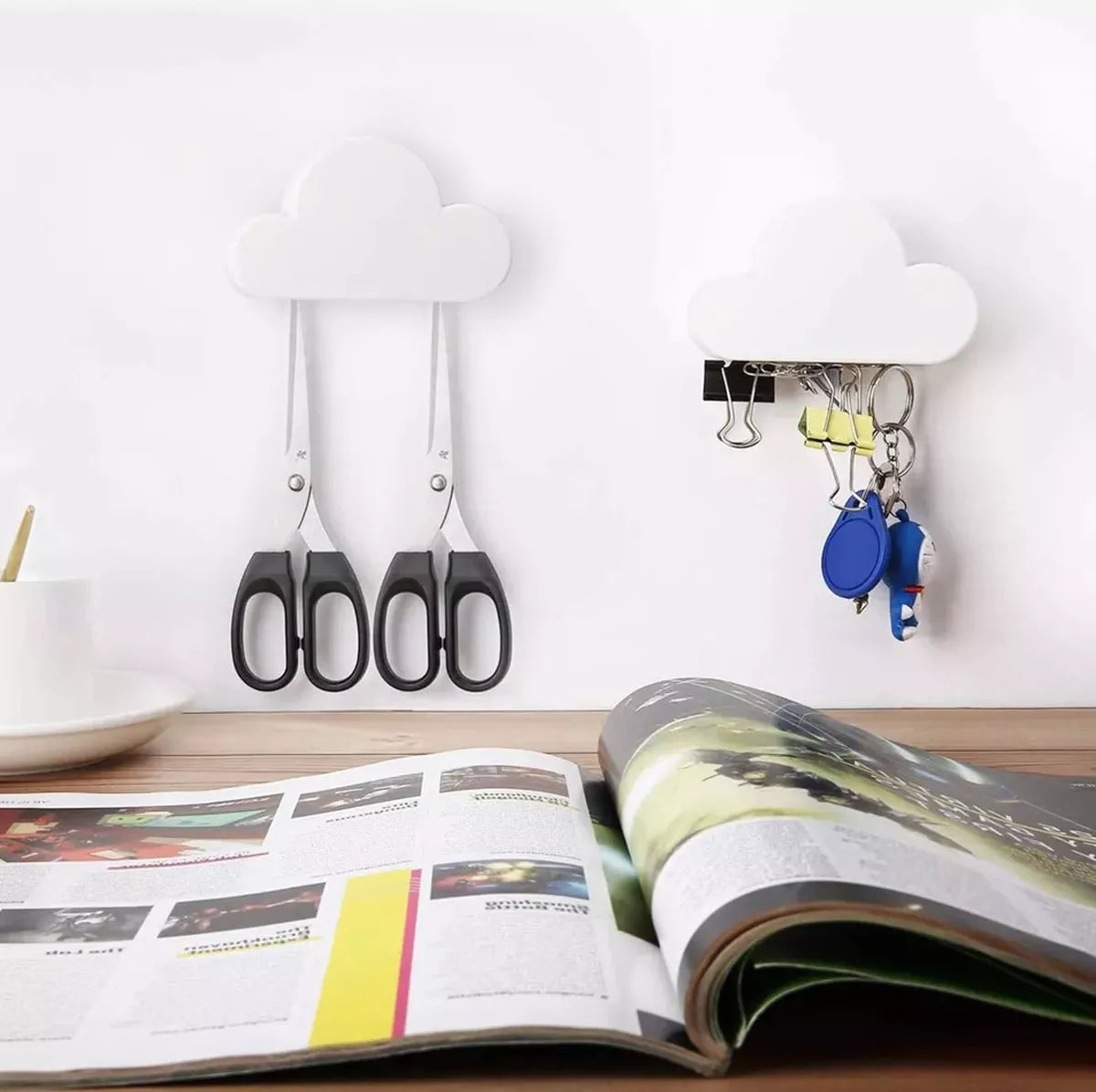 Kompaktiškas, magnetinis debesies formos raktų laikiklis. Tvirtinimas prie sienos. Apatinėje dalyje įmontuotas stiprus magnetas leidžia patogiai laikyti net kelis raktų pakabukus vienu metu.