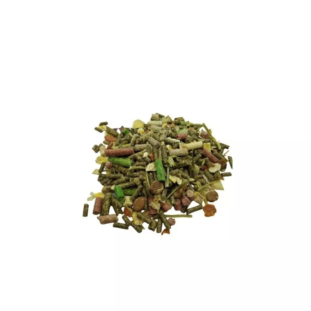Sudėtis: žolė (presuota), džiovintos morkos, pastarnokas, šienas, salieras, saldymedžio žievė, petražolės, krapai ir kt.Dozavimas: duoti kaip kasdieninį pašarą priklausomai nuo gyvūno dydžio1-2 kartus per dieną. Narvelyje visada turi būti šviežio vandens.