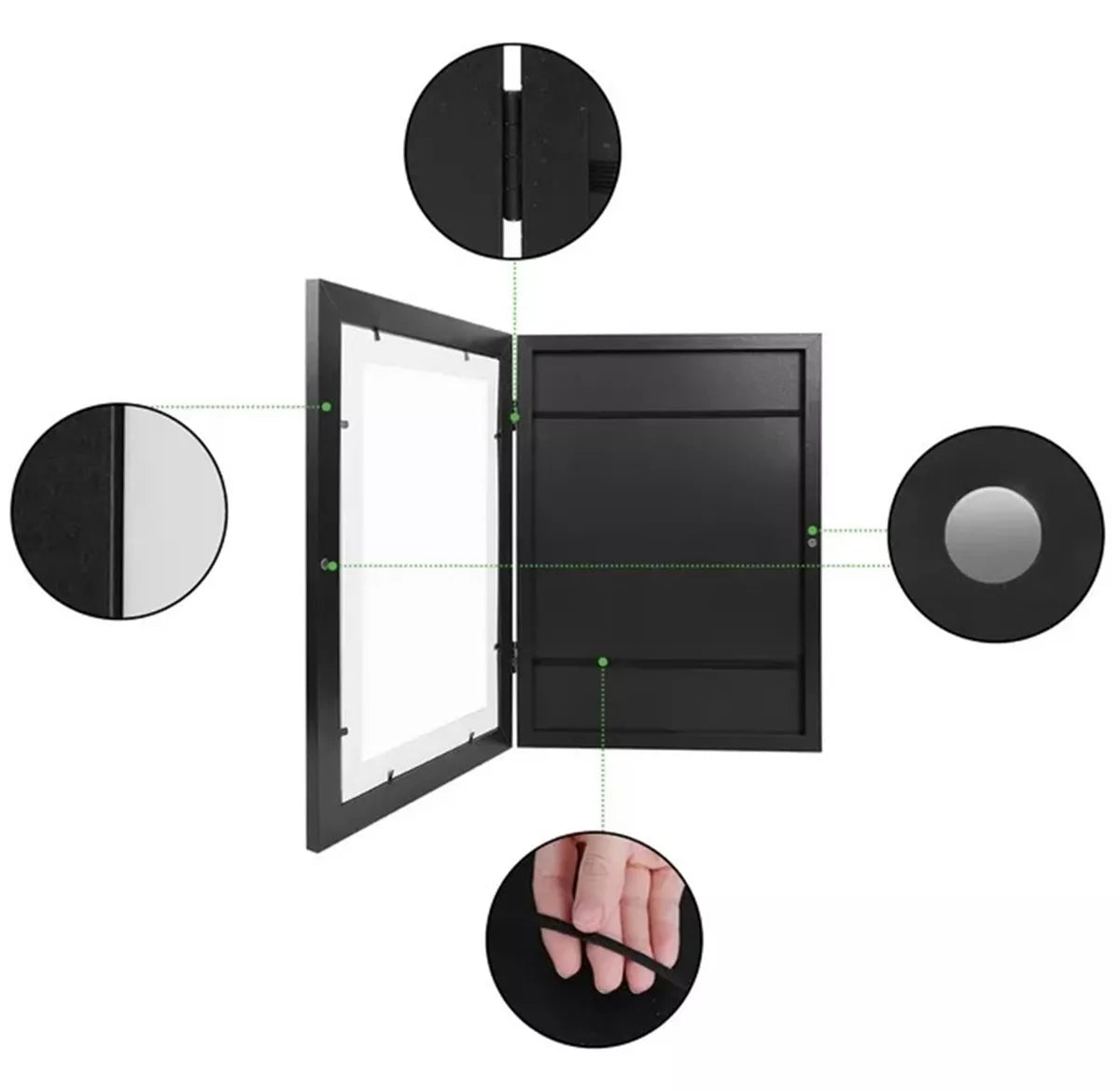 Medinis rėmelis A4 formato nuotraukoms/nuotraukoms. Tai leidžia patogiai įmontuotame skyriuje laikyti iki kelių dešimčių A4 formato lapų. Neeksponuotos nuotraukos tvirtinamos elastinėmis juostomis rėmelio viduje. Rėmas turi patogų magnetinį užsegimą rėmo išorėje.