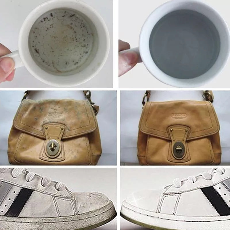 • Nešvarumų trintukai - kempinėlės puikiai išvalo rašymo priemonių, riebalų, kalkių apnašų, įsisenėjusio purvo žymes bei pelėsį, atnaujina visus tikros ir dirbtinės odos paviršius!