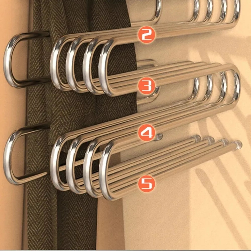 Tvirta, plieninė kelnių pakaba. Tai leidžia vienu metu pakabinti iki 5 kelnių porų. Puikus būdas taupyti vietą ankštoje spintoje. Pagaminta iš patvarių medžiagų (plieno).