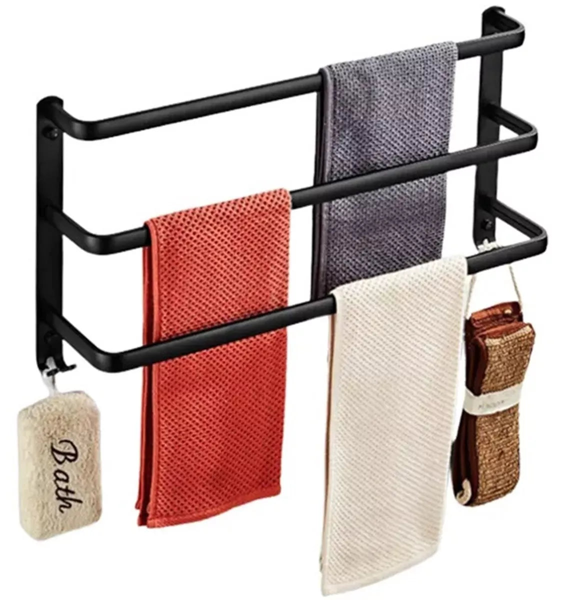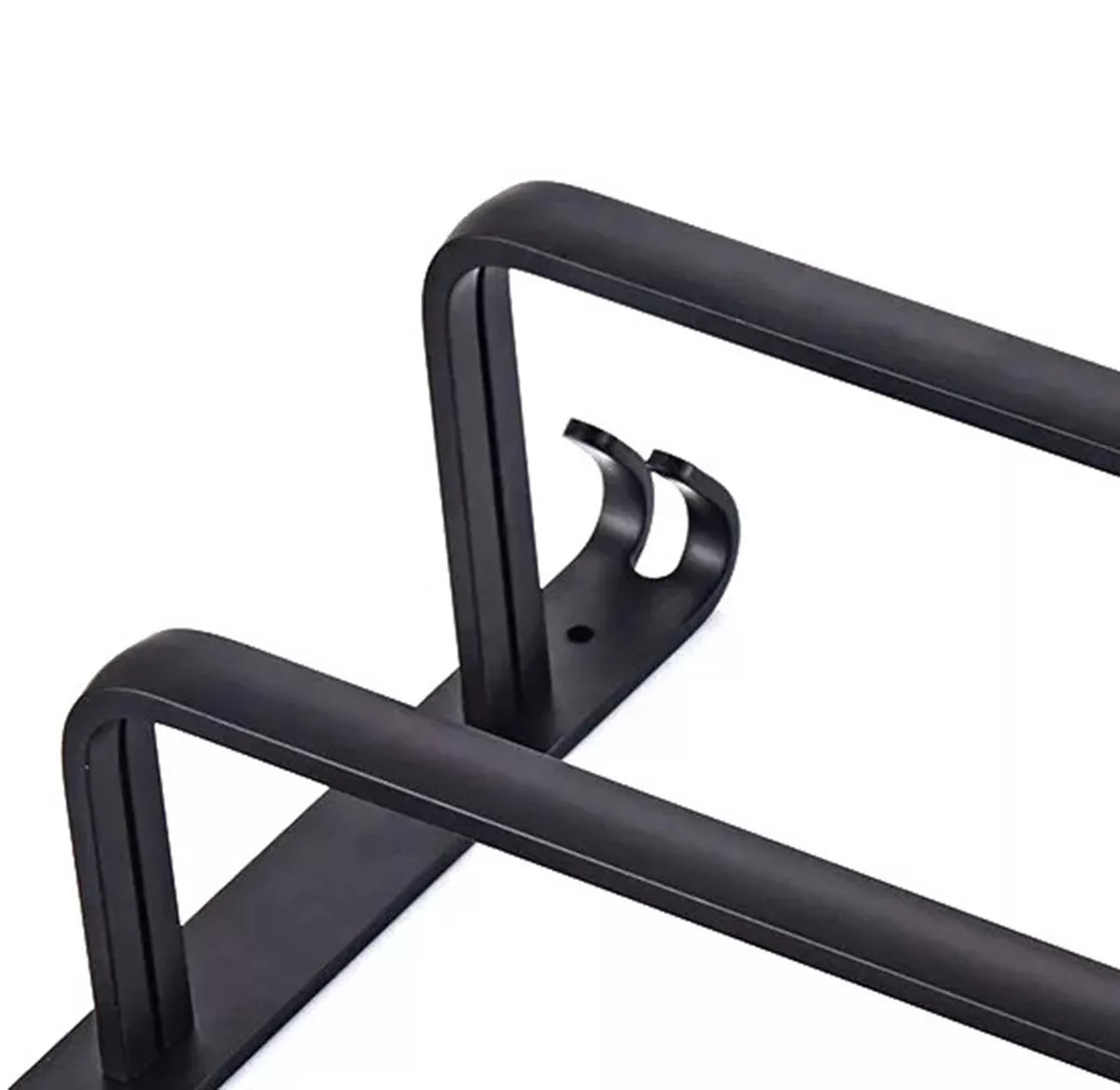 Lofto stiliaus metalinė vonios kabykla.Pagaminta iš vientiso aliuminio milteliniu būdu padengto juodo kilimėlio.Gaminys atsparus drėgmei ir trinčiai, o tai užtikrins ilgą ir be rūpesčių naudojimą.Laikiklis turi tris rankenėles rankšluosčiams pakabinti.Papildomi kabliukai (dvi poros) konstrukcijos apačioje.Standartinis tvirtinimas varžtais (visi elementai yra įtraukti).Medžiaga: aliuminis (dengtas milteliniu būdu)Ilgis (plotis): 50 cmGylis: 15 cmAukštis: 24,5 cmSpalva: juodas matinisPakuotė: kartonas