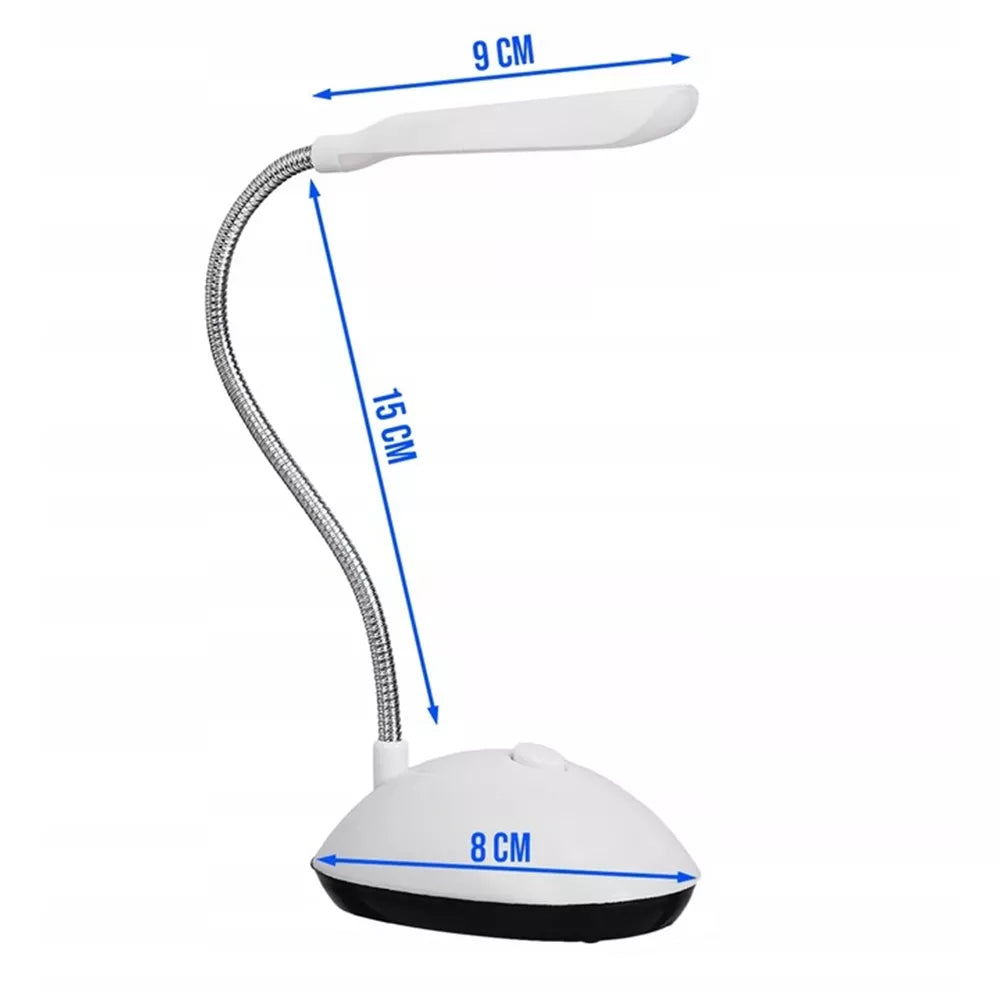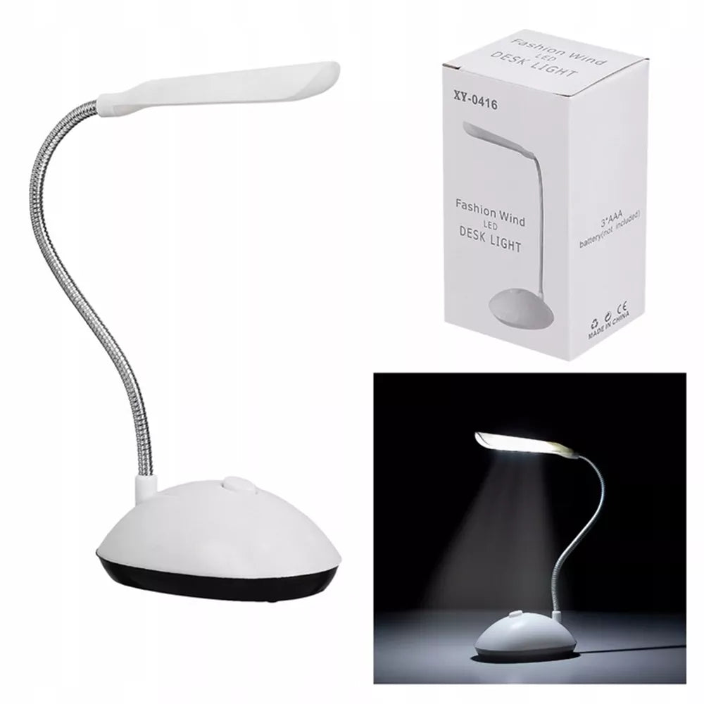 Mini LED stalinis šviestuvas XY-0416, kuris idealiai tinka darbui, pvz. nešiojamuoju kompiuteriu ar knygų skaitymui lovoje.Šviesos diodai naudojimo metu neįkaista, todėl lemputė yra saugi vaikui.Lankstus stovas.Įjungimo/išjungimo jungiklis.Galima naudoti kaip naktine lempute. Šviestuvas maitinamas 3x AAA baterijomis (elementai nepridedami).