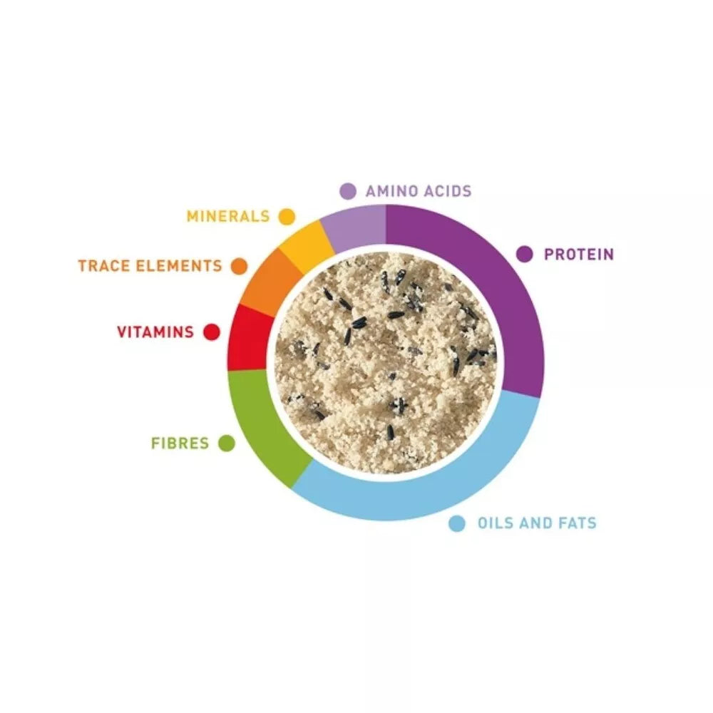 Pilnavertis minkštas lesalas pagardintas medumi ir prisotintas mikroelementais, amino rūgštimis ir vitaminais egzotiniams paukščiams. Sudėtyje nėra dažiklių, net atskiruose ingredientuose....