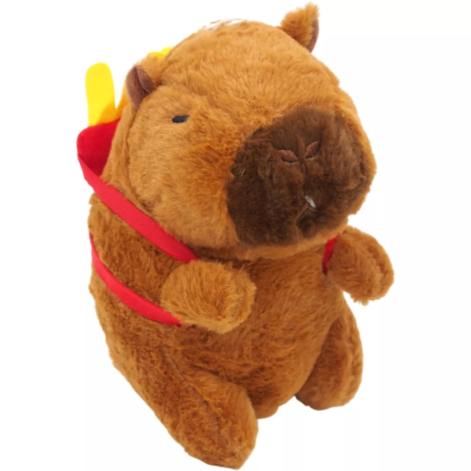 Minkštas pliušinis žaislas kapibara su bulvyčių kuprine