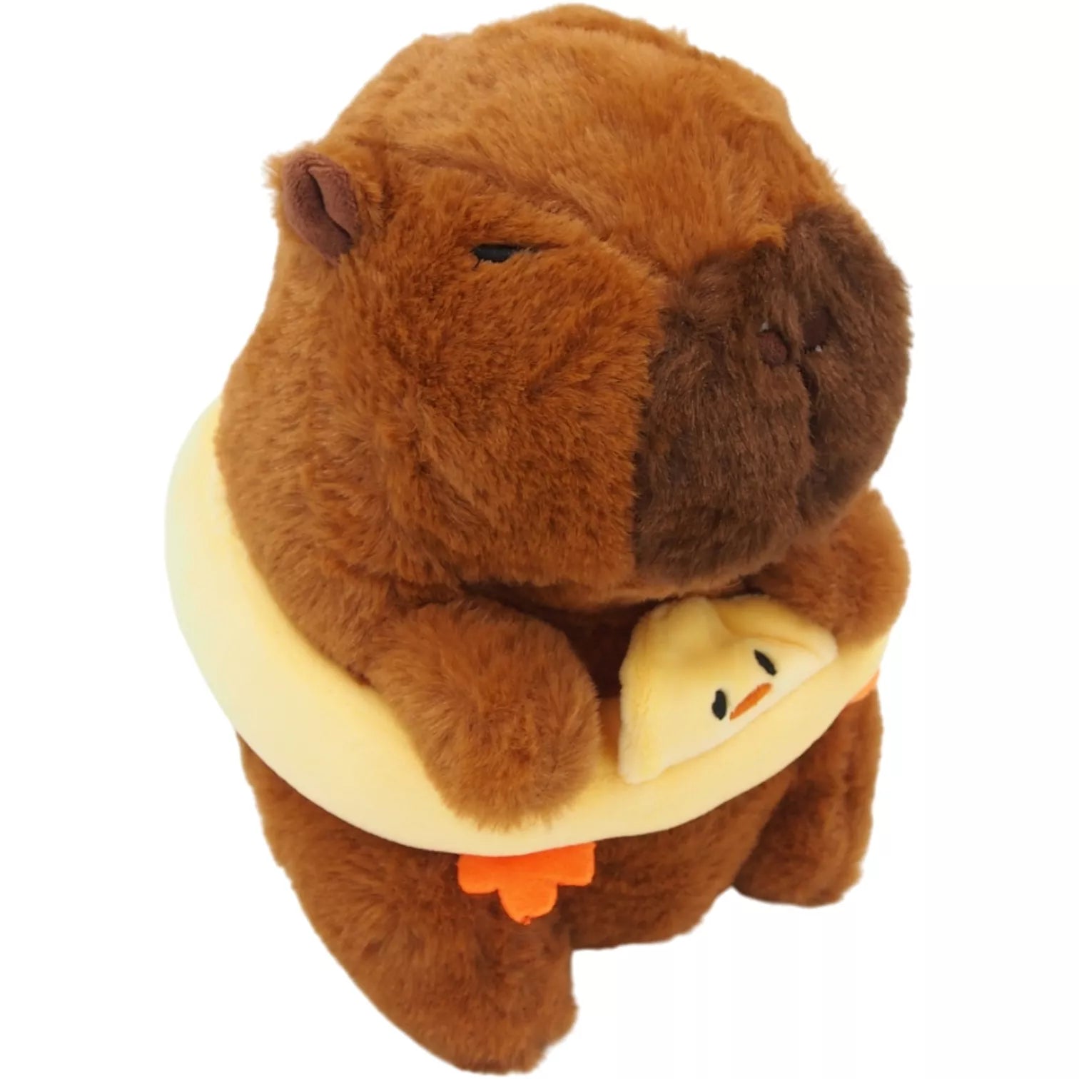 Minkštas pliušinis žaislas kapibara su geltonu plūduru
