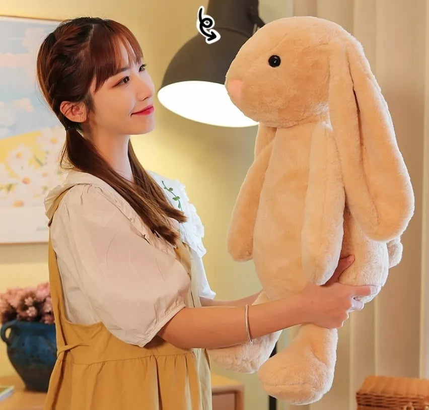 Šis didelis, mielas pliušinis zuikutis pavergs tiek vaikų, tiek suaugusiųjų širdis! Pagamintas iš aukštos kokybės, švelnaus pliušo, jis yra nepaprastai minkštas ir malonus liesti – tobulas pasirinkimas apkabinimams, poilsiui ar jaukiems vakarams.