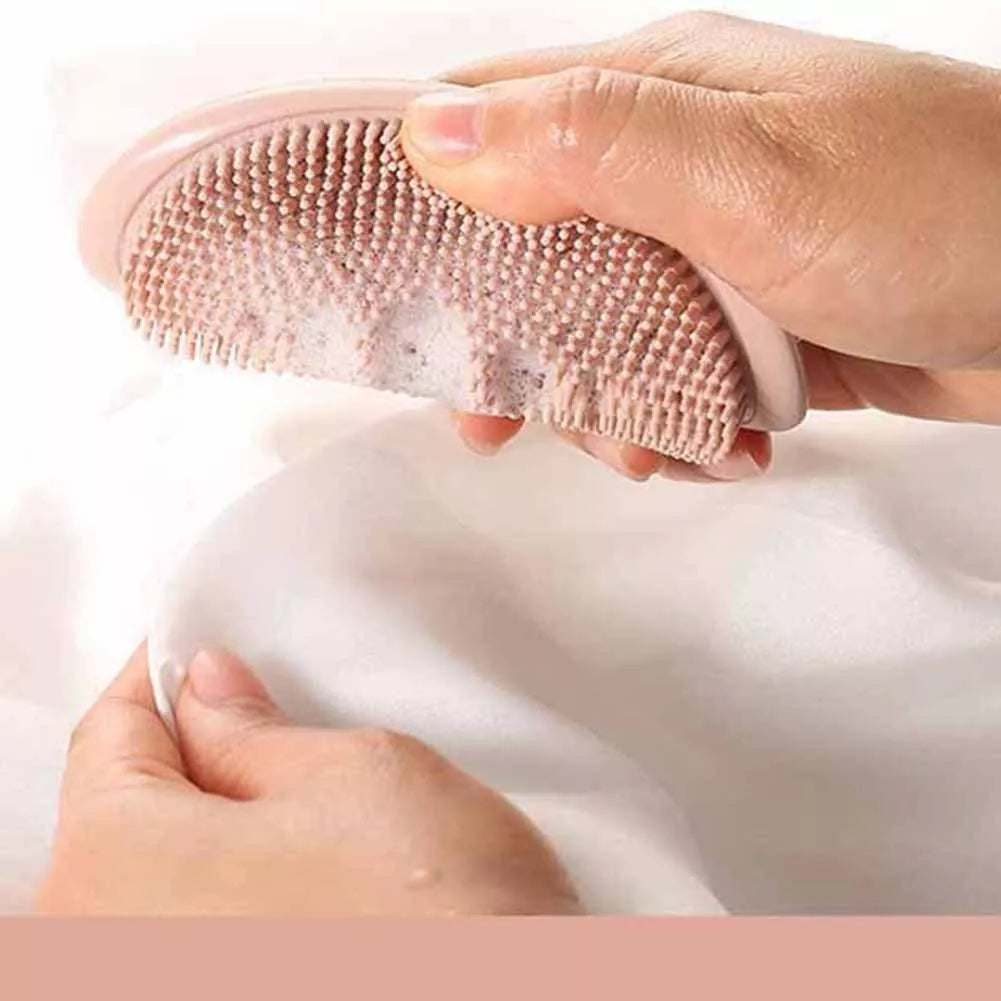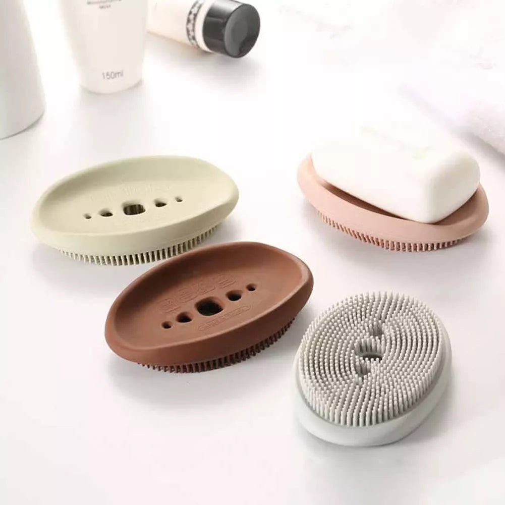 Dvipusė silikoninis muil laikiklis su šepetėliu. Universalus ir praktiškas vonios kambario aksesuaras.Išmatavimai: 11,5X7,5 cm.Medžiaga:silikonas.Spalva: parenkama atsitiktinai.