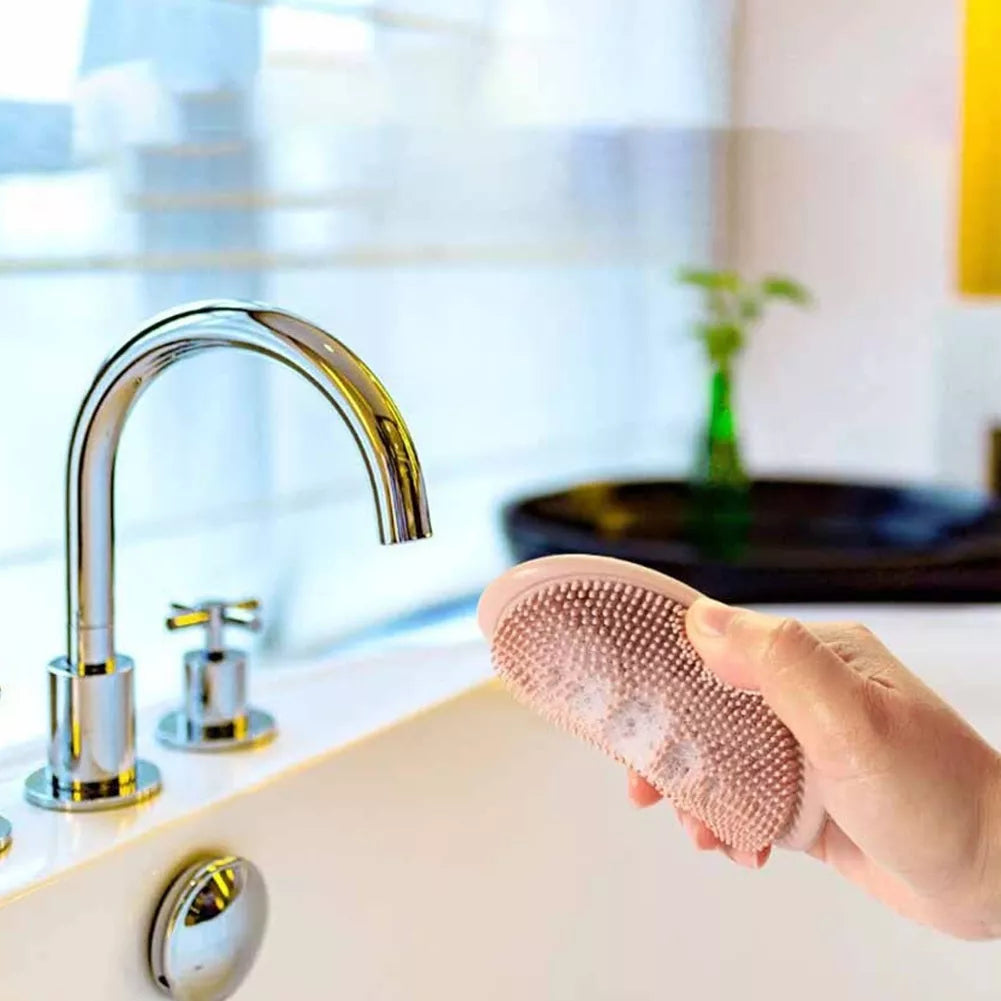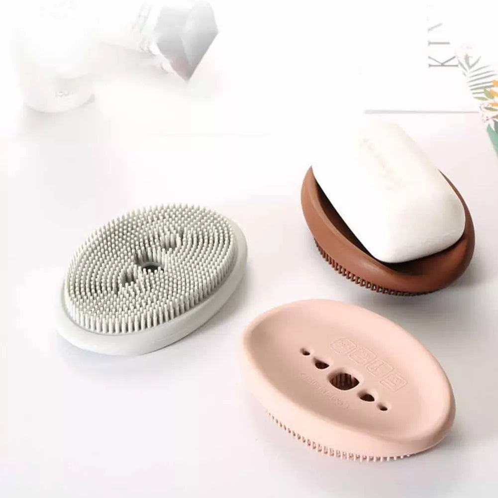 Dvipusė silikoninis muil laikiklis su šepetėliu.