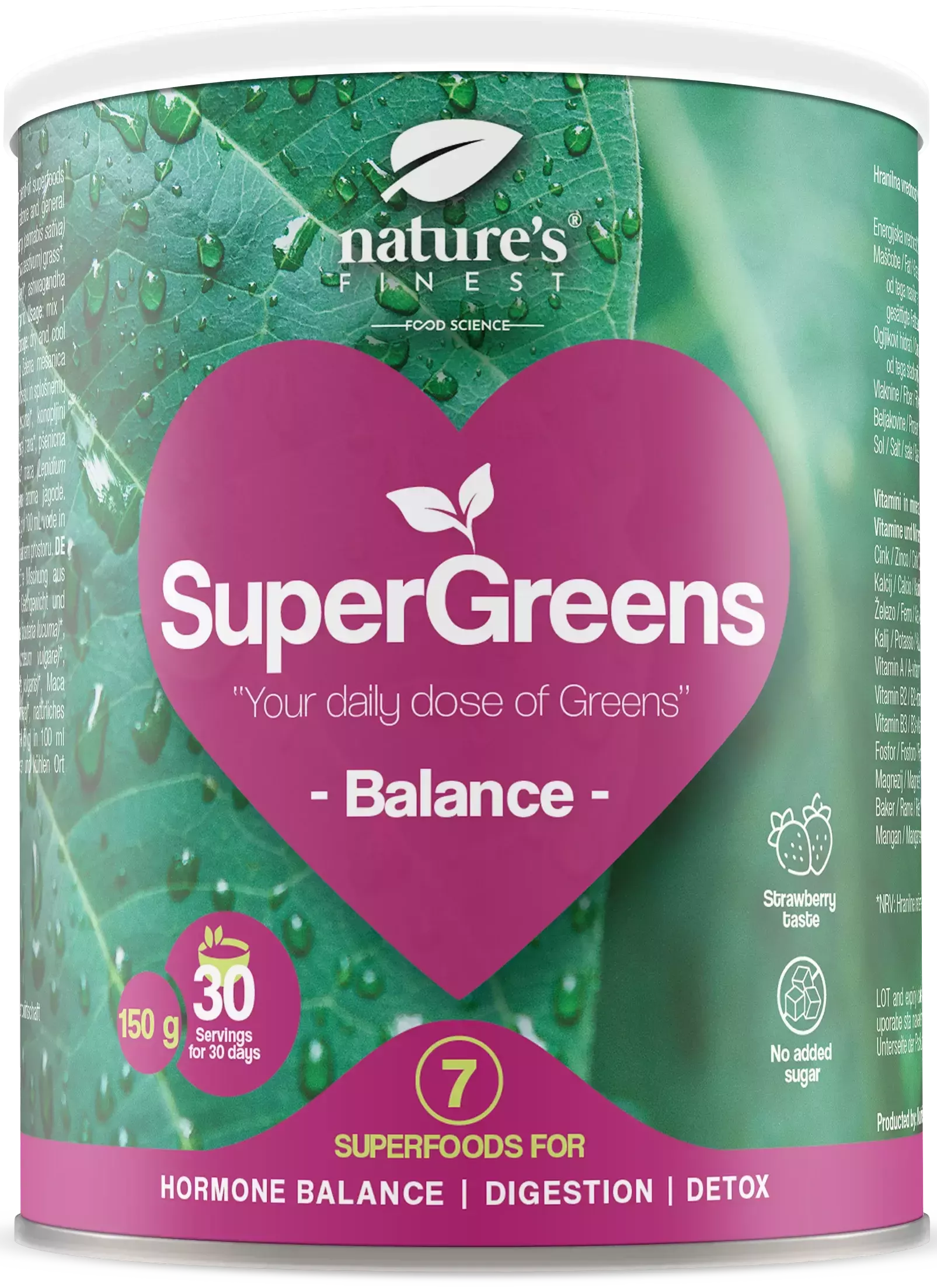 Nature's Finest supermaisto mišinys balansui „SuperGreens BALANCE“, ekologiškas 150 g.