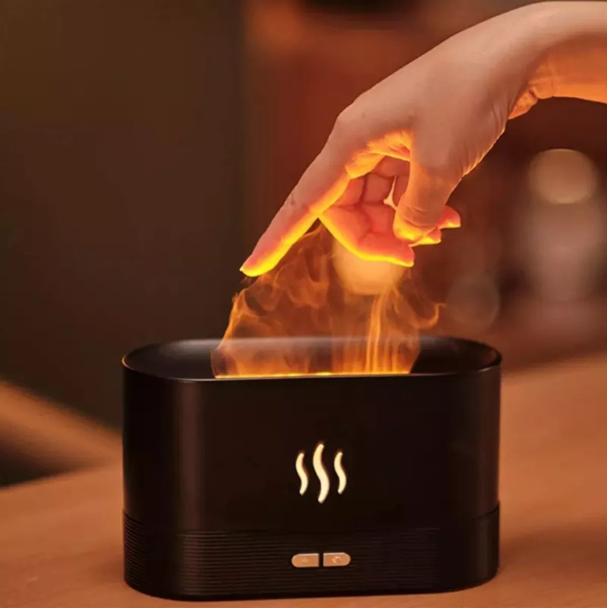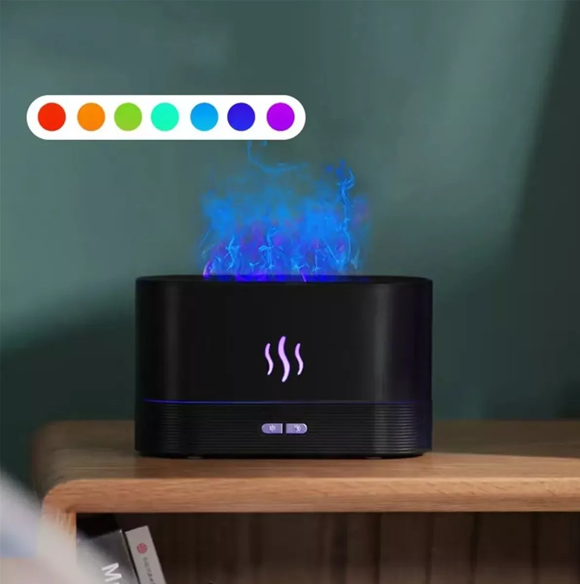 - Kompaktiškas ir energiją taupantis oro drėkintuvas su spalvingu RGB LED foniniu apšvietimu, imituojančiu liepsną.