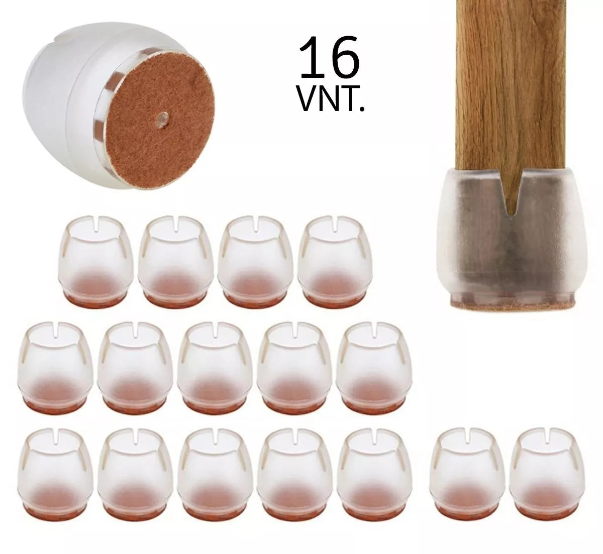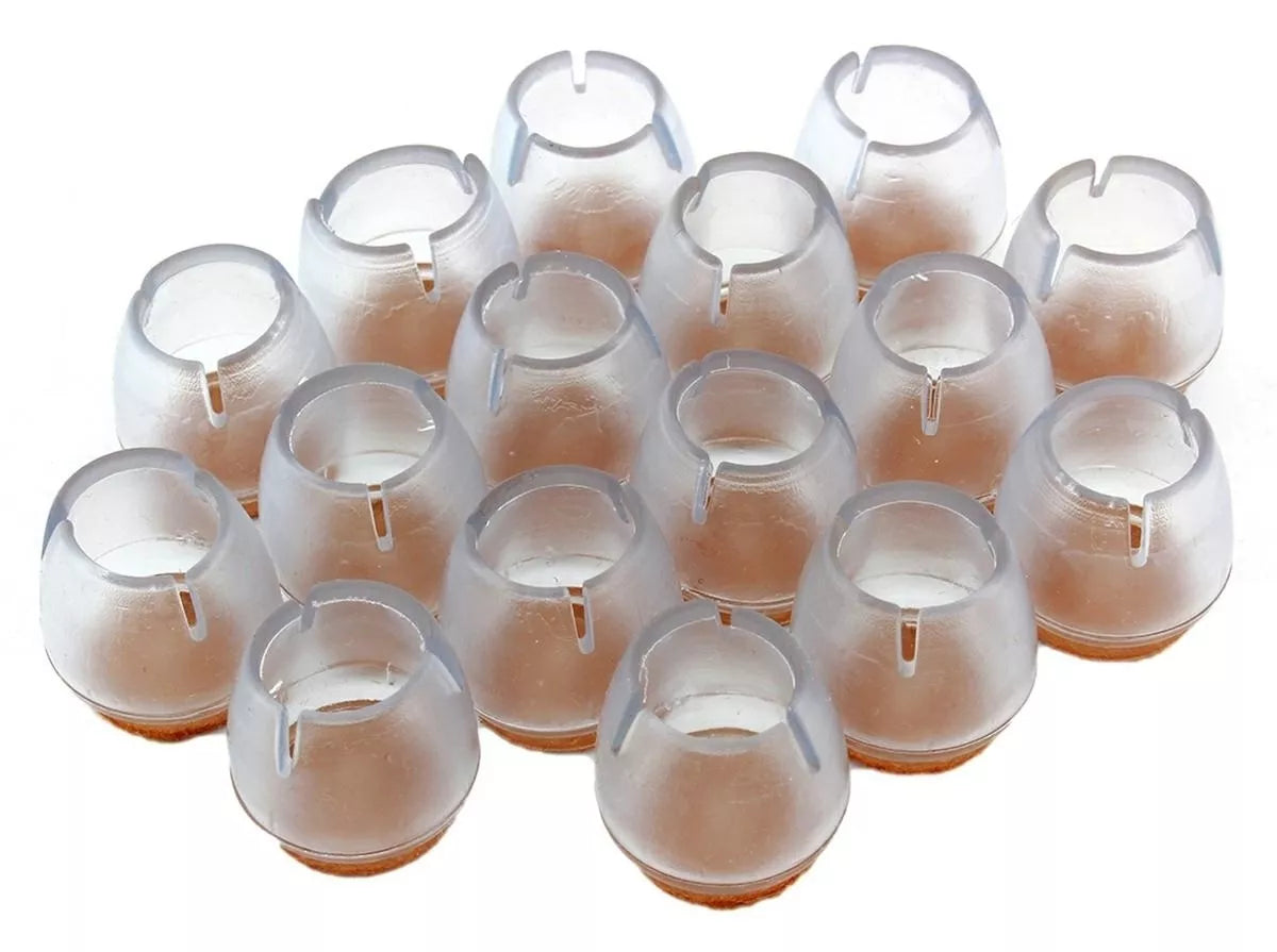 16 neslidžių silikoninių pagalvėlių rinkinys baldams. Pagaminta iš patvaraus ir lankstaus silikono, kuris užtikrina didelį patvarumą ir gerą prigludimą prie baldų kojų. Apatinis sluoksnis išklotas veltiniu, kuris užtikrina puikią garso izoliaciją ir apsaugo nuo nemalonaus maišymosi triukšmo judant baldus. Jie puikiai tinka apsaugoti grindis nuo subraižymo.