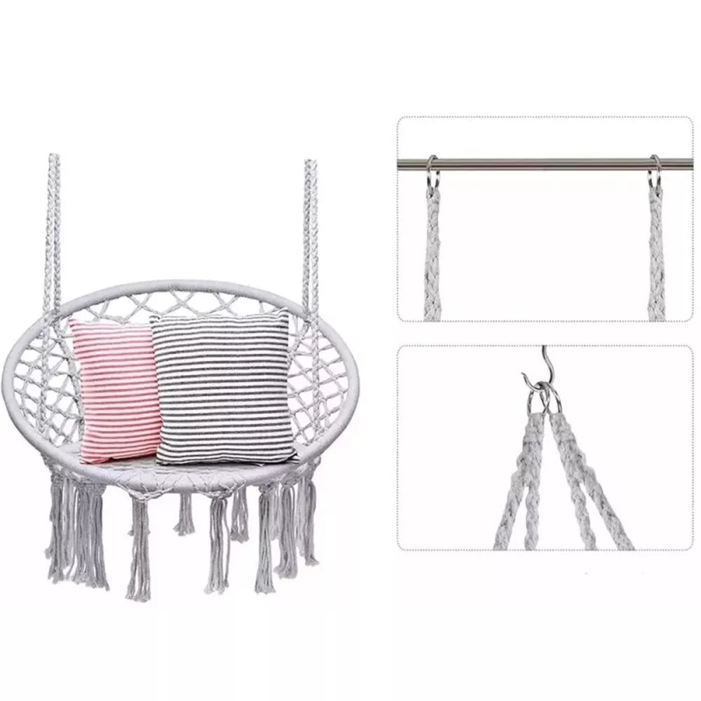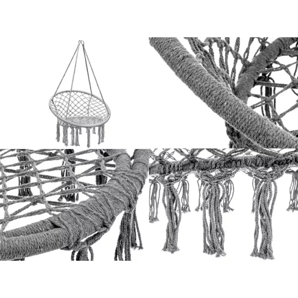 Tai ko ieškojote - pakabinamas apvalus hamakas su atlošu! Su ypač tvirtu pakabinimu, lengva tvirtinti. Geriausias poilsis gamtoje.
