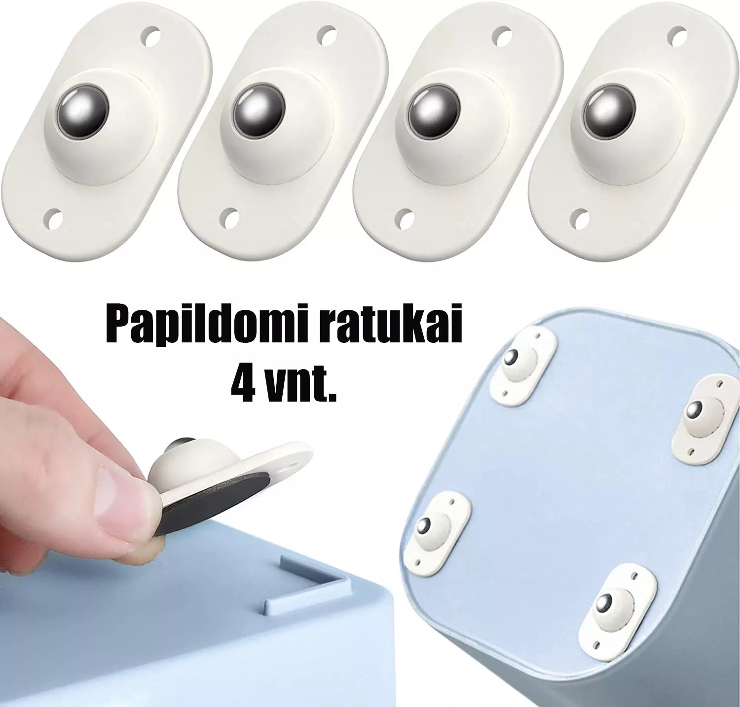 - 360° laipsnių pasukimas: šiuos 360° kampu besisukančius ratukus galima pritvirtinti prie daiktadėžės apačios, todėl galėsite mėgautis 360 laipsnių judėjimu, kad galėtumėte manevruoti.