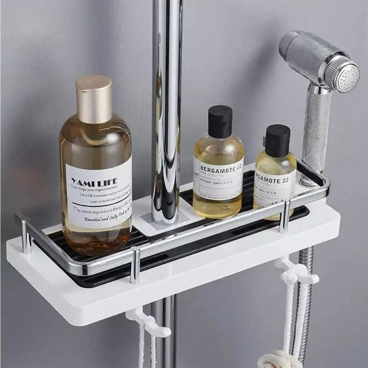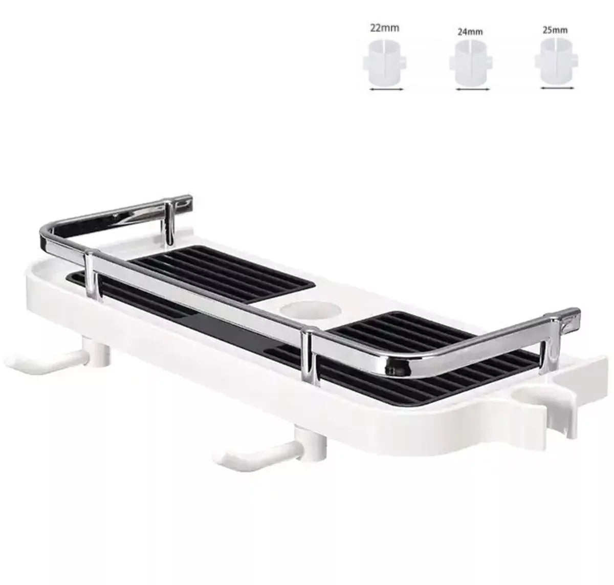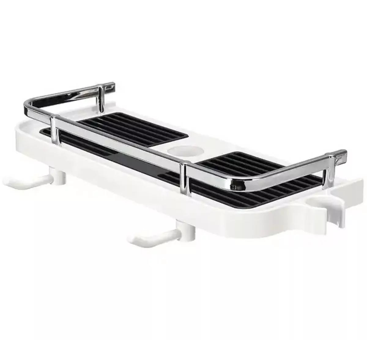 Patogi, kompaktiška lentyna, skirta montuoti ant dušo bėgelio.Itin patogus sprendimas ir puikiai taupantis erdvę.Labai lengvas ir neinvazinis montavimas (ant dušo juostos / maišytuvo)Papildomas barjeras priekyje neleidžia kosmetikai netyčia nukristi.Gerai apgalvota konstrukcija neleidžia kauptis vandeniui (perforuotas pagrindas)Puikiai tinka kaip dušo lentyna kosmetikai.Specifikacija: