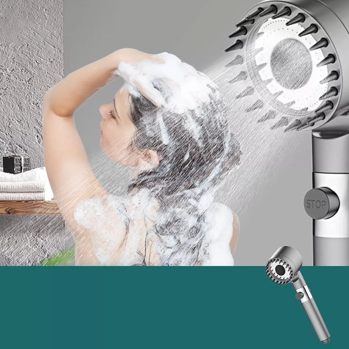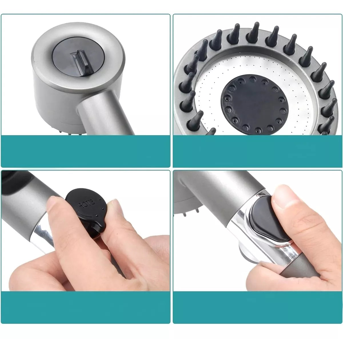Pilka dušo galvutė. Skirta montuoti į standartinę dušo žarną. Galvvutė turi klasikinę dušo funkciją ir STOP funkciją, kuri sustabdo srautą. Papildomas privalumas yra galimybė reguliuoti srovės stiprumą naudojant rankenėlę, esančią gale.