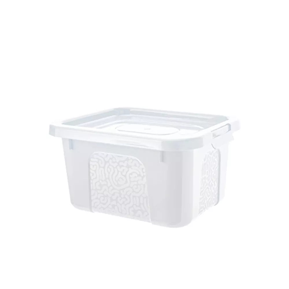 praktiškas ir funkcionalus;turi subtilų, dekoratyvinį raštą;pagamintas iš patvaraus ir kokybiško plastiko;komplektuojamas su dangteliu, kurio dėka daiktai nedulkės ir nesusiteps;skaidri spalva leidžia iš karto pamatyti, kas yra viduje, neišimant konteinerio;puikiai tinka sezoninėms dekoracijoms, vaikiškiems žaislams ir namų apyvokos daiktams laikyti;leidžia lengviau palaikyti tvarką namuose.Techniniai duomenys:
